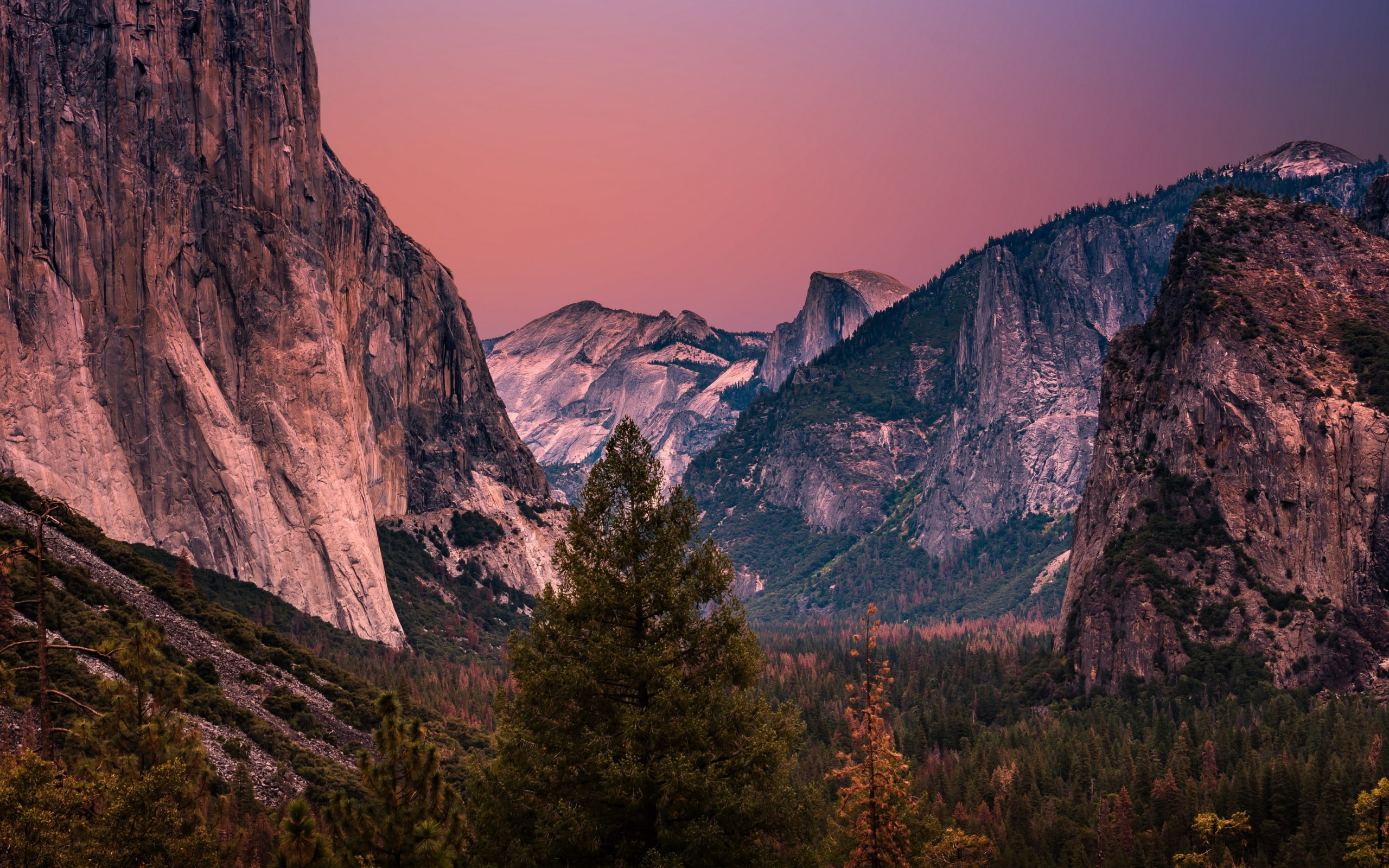Beautiful Mountains Forest and Purple Sunset - 2560x1600
