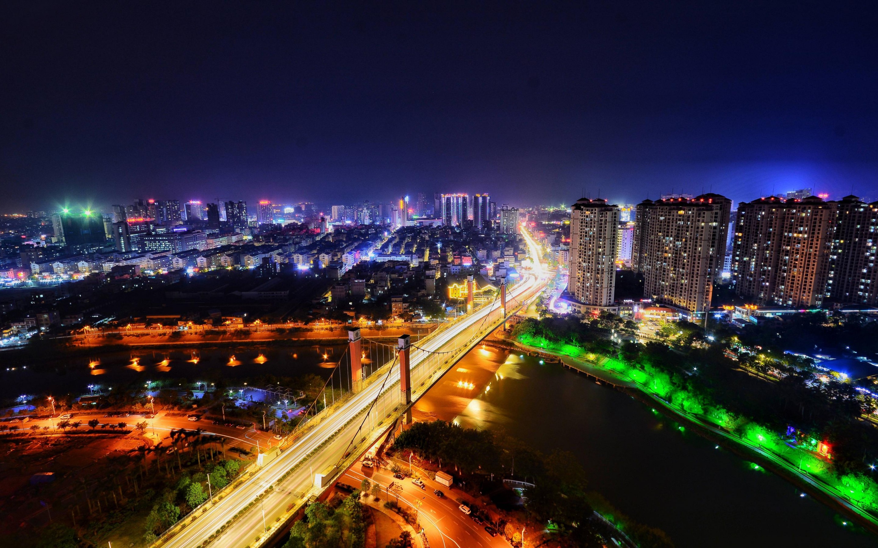 Beautiful Night City and Bridge with Lights - 2880x1800