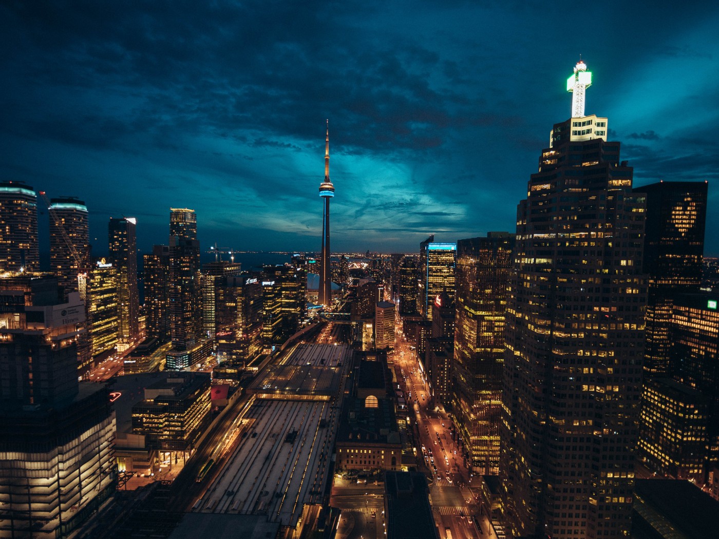 Beautiful Night City and Skyscrapers with Lights - 1400x1050