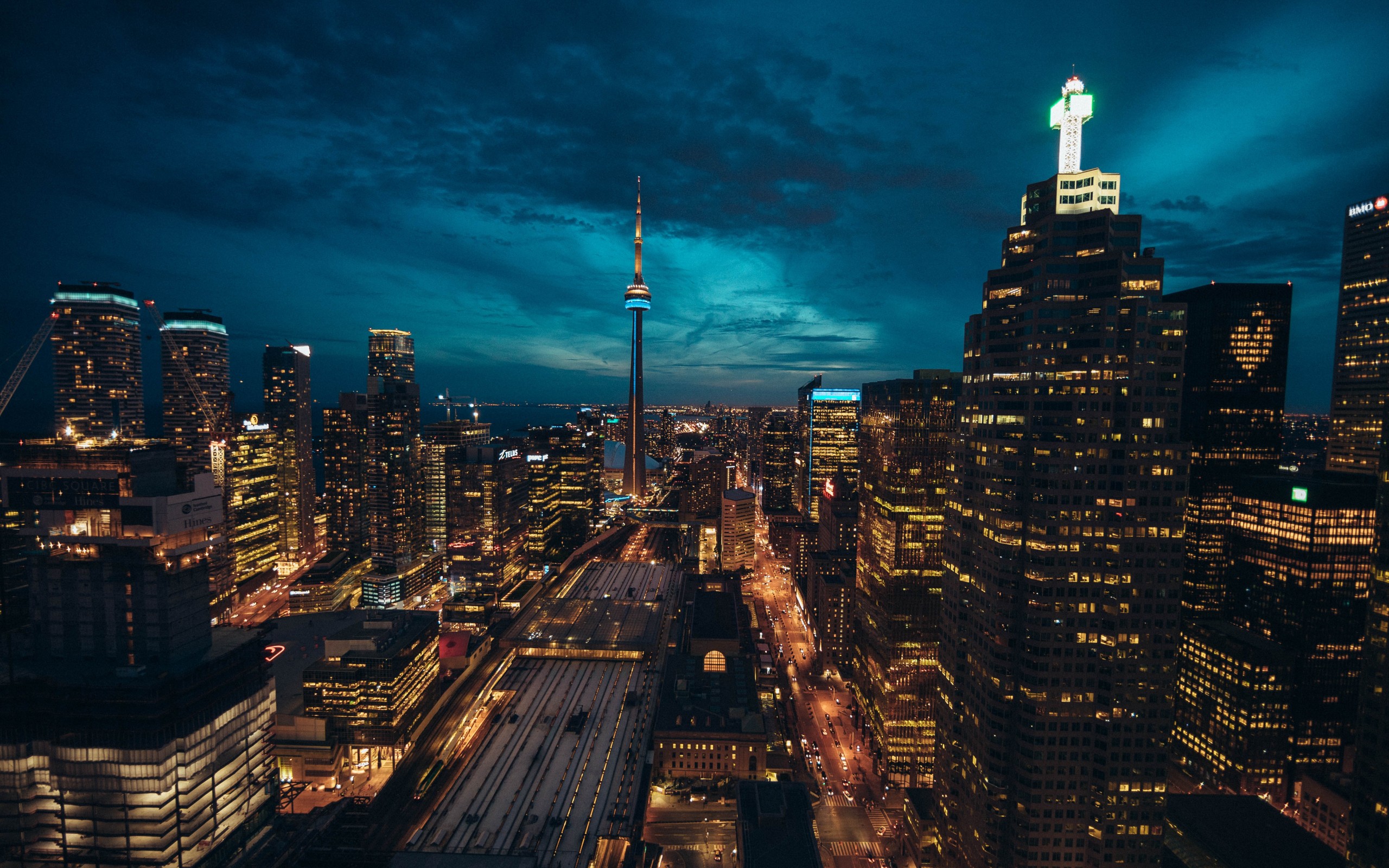 Beautiful Night City and Skyscrapers with Lights - 2560x1600