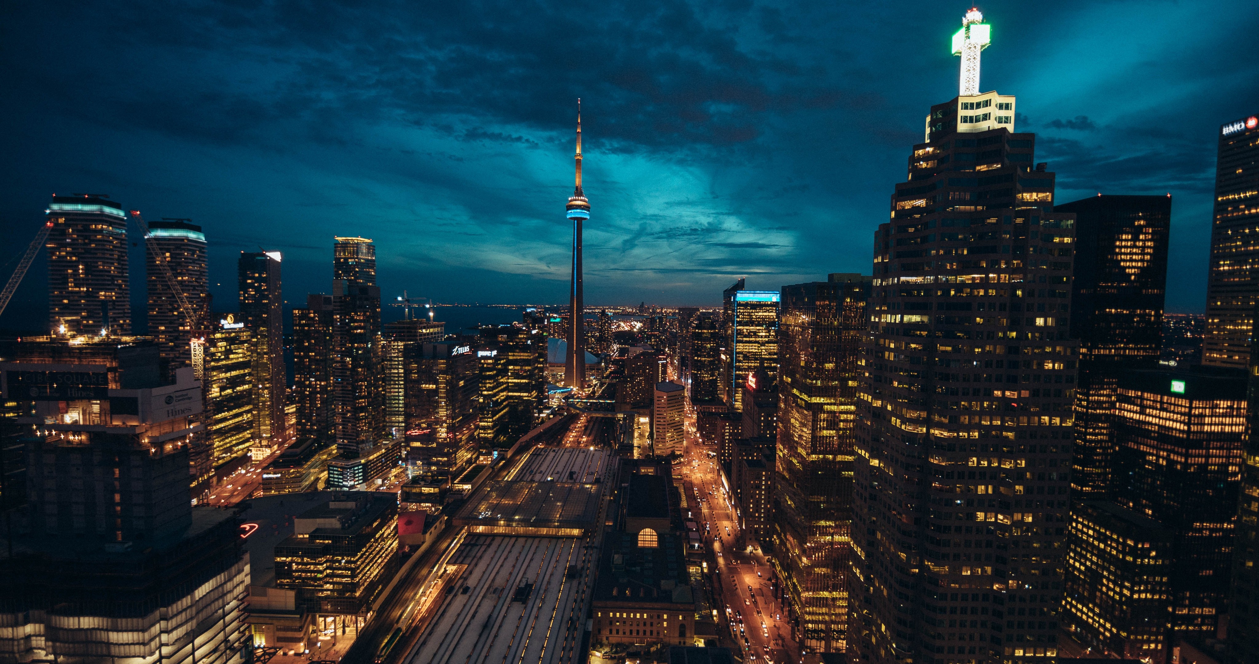 Beautiful Night City and Skyscrapers with Lights - 4096x2160 4K