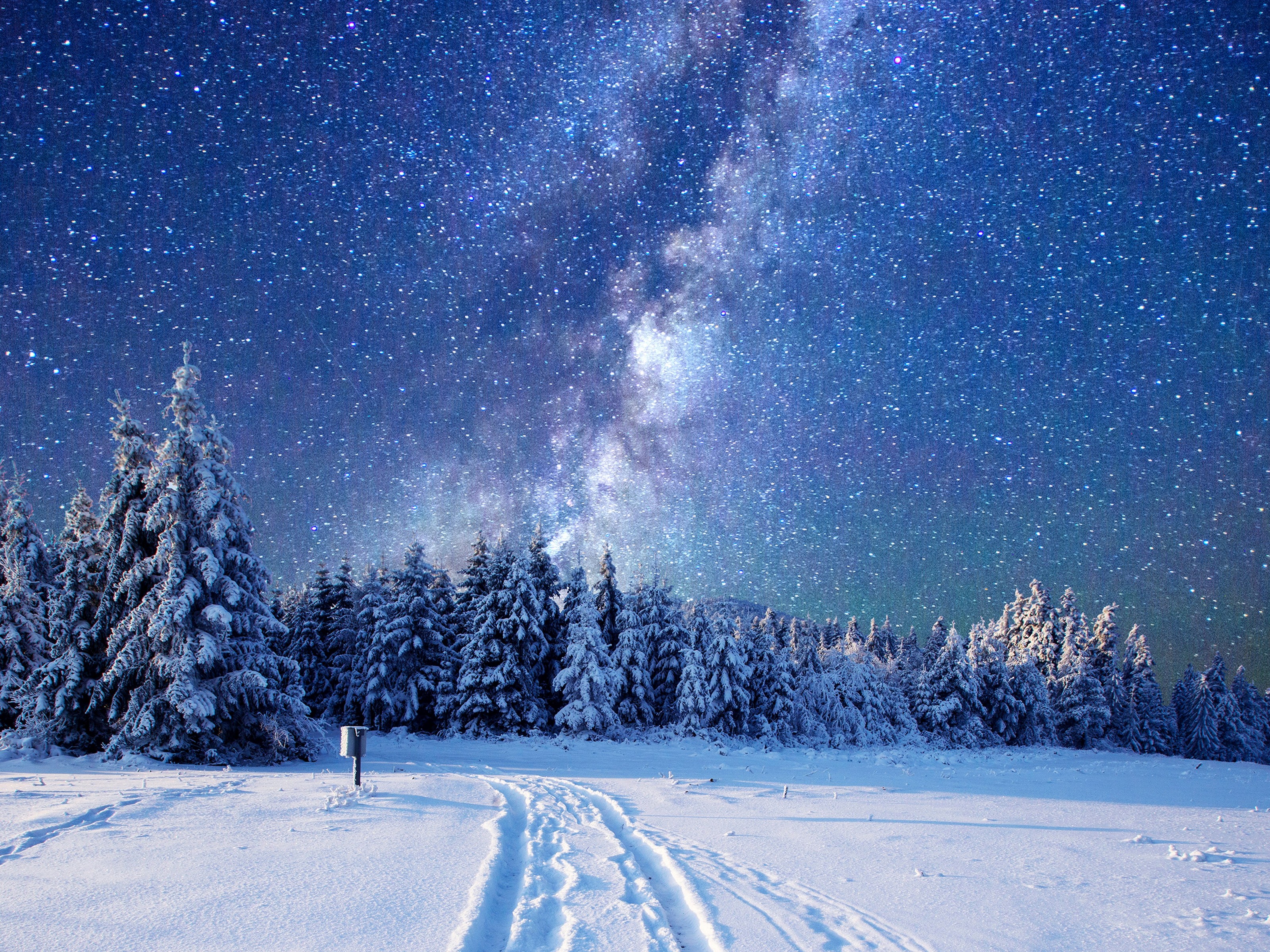 Beautiful Night in Winter Forest and Starry Sky - 3200x2400