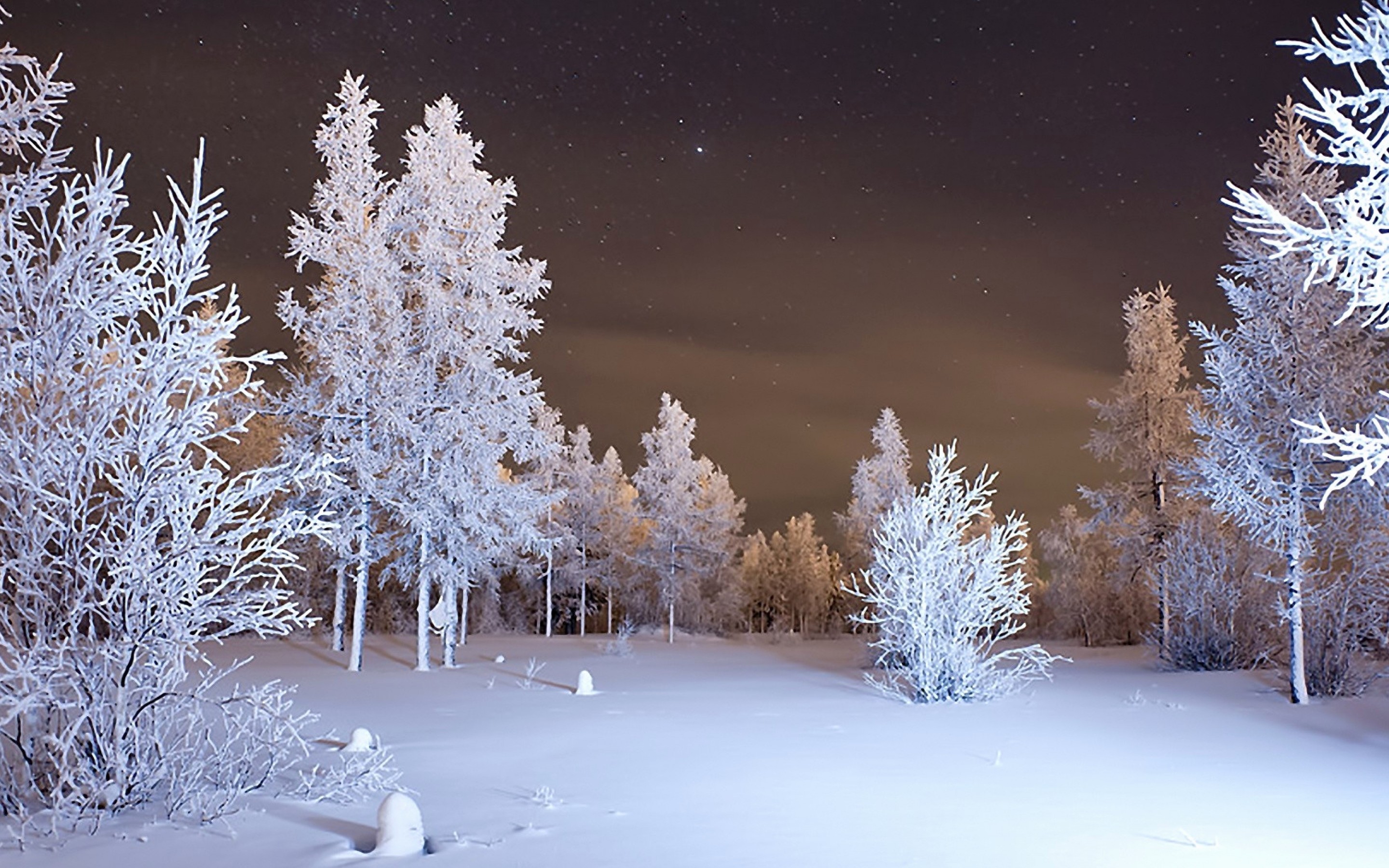 Beautiful Night in Winter Pine Forest - 2880x1800