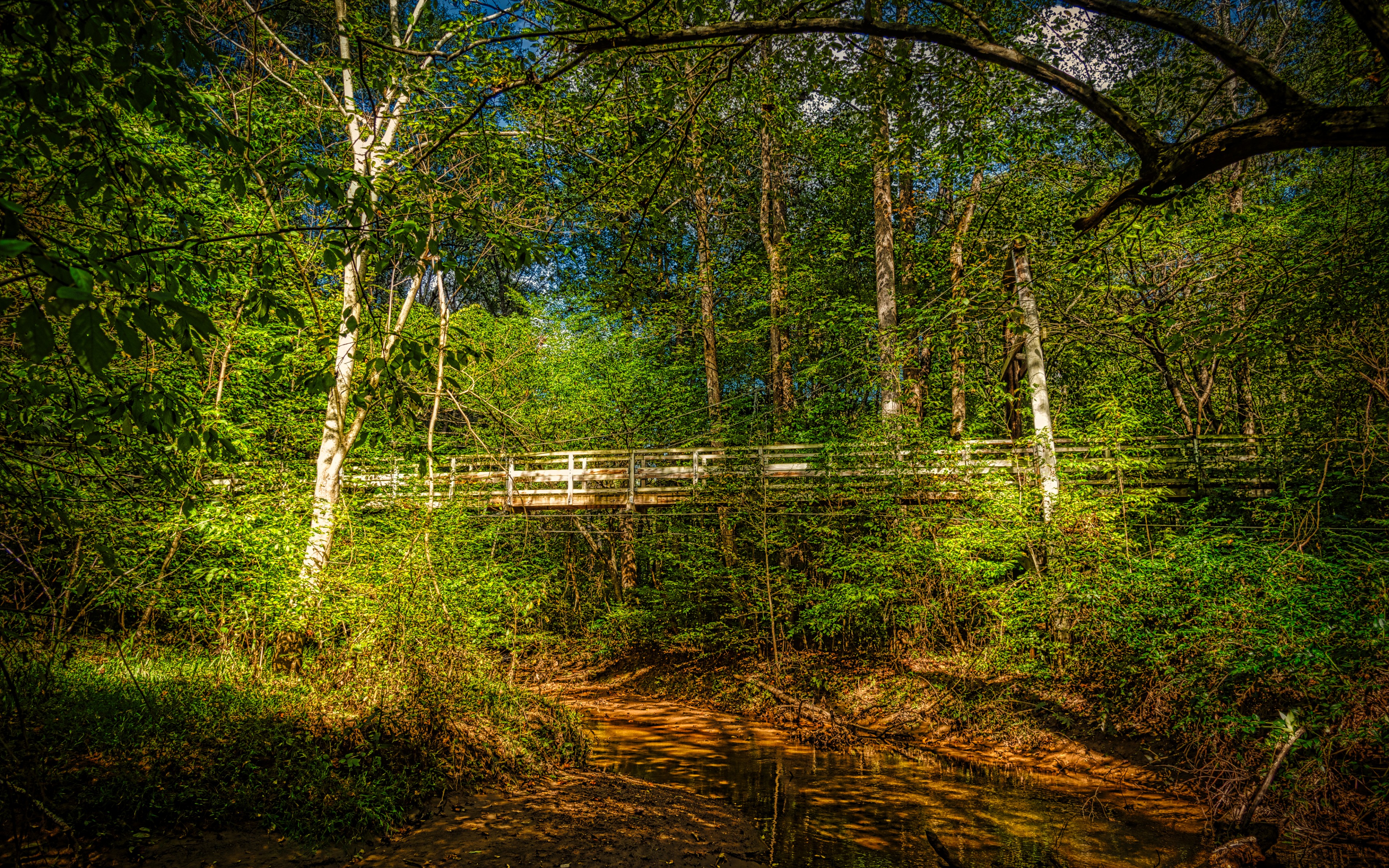Beautiful Old Bridge in Green Trees - 3840x2400