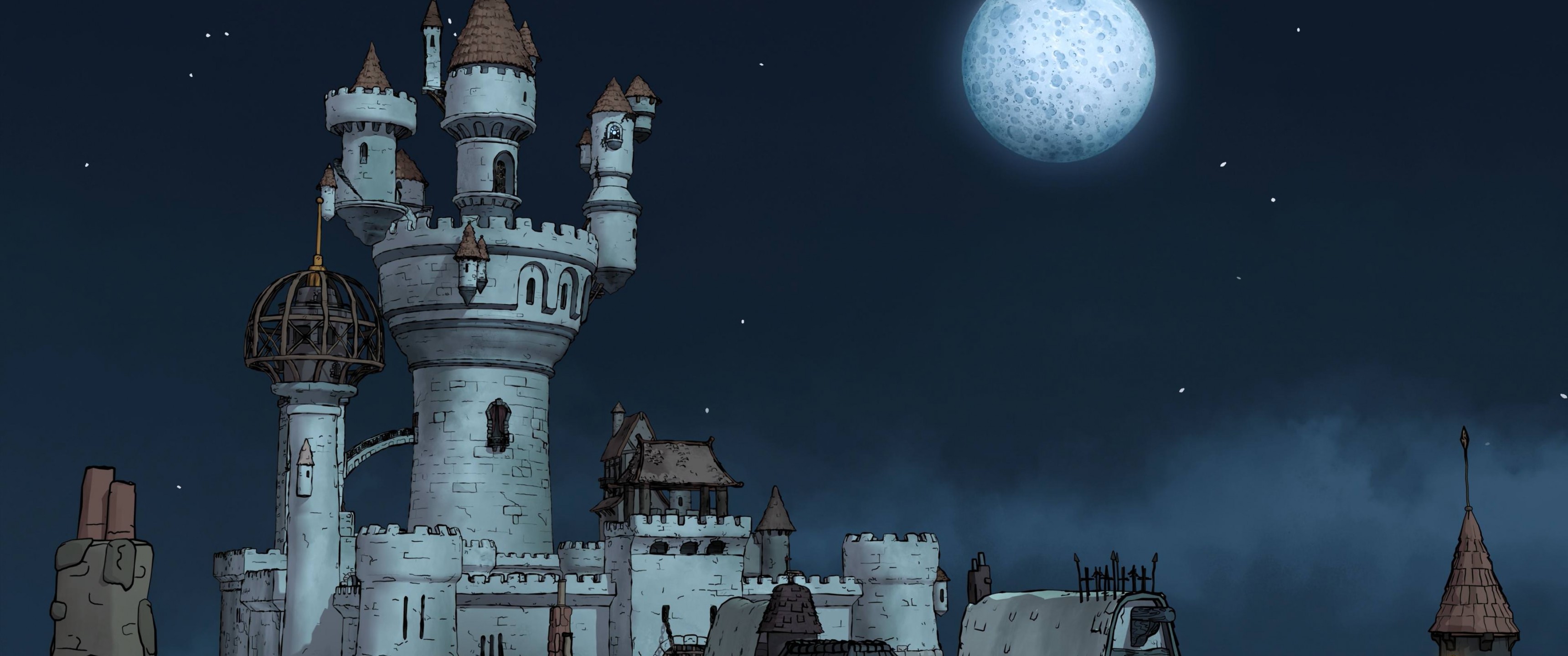Beautiful old cartoon castle and Moon - 3440x1440 Ultra WQHD