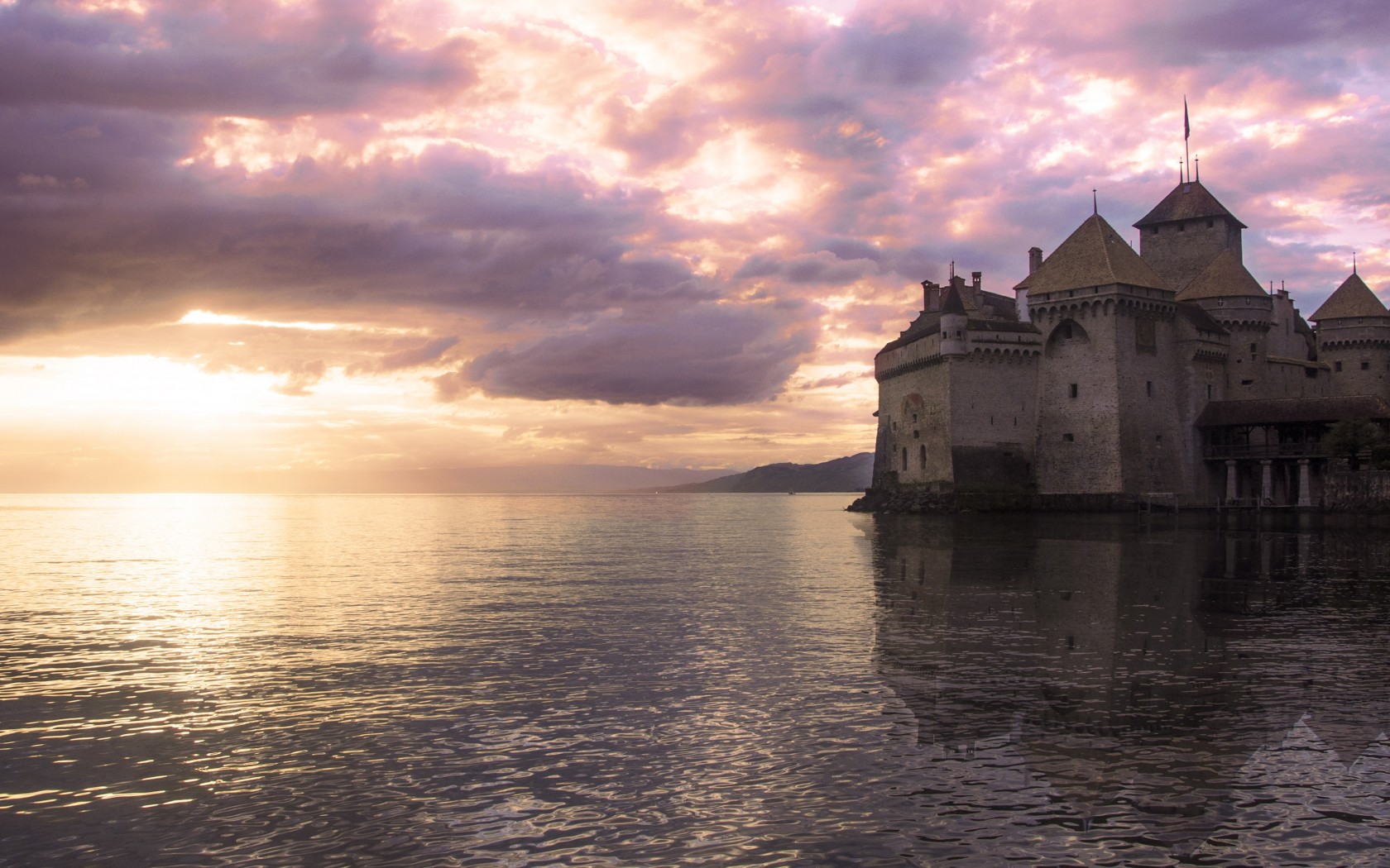 Beautiful Old Castle on Shore - 1680x1050
