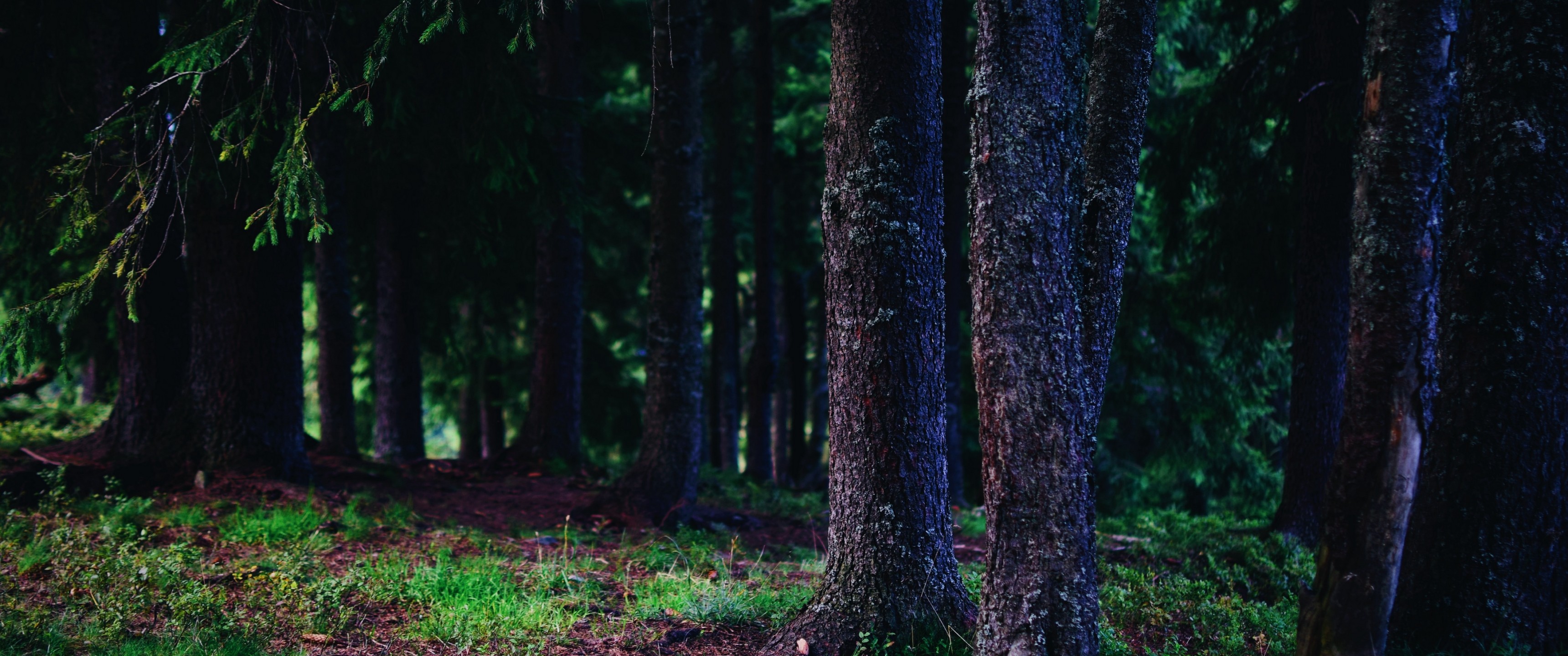 Beautiful Old Dark Pine Forest - 3440x1440 Ultra WQHD