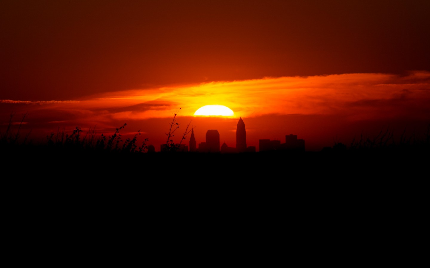 Beautiful Orange Sunset and City Buildings - 1440x900