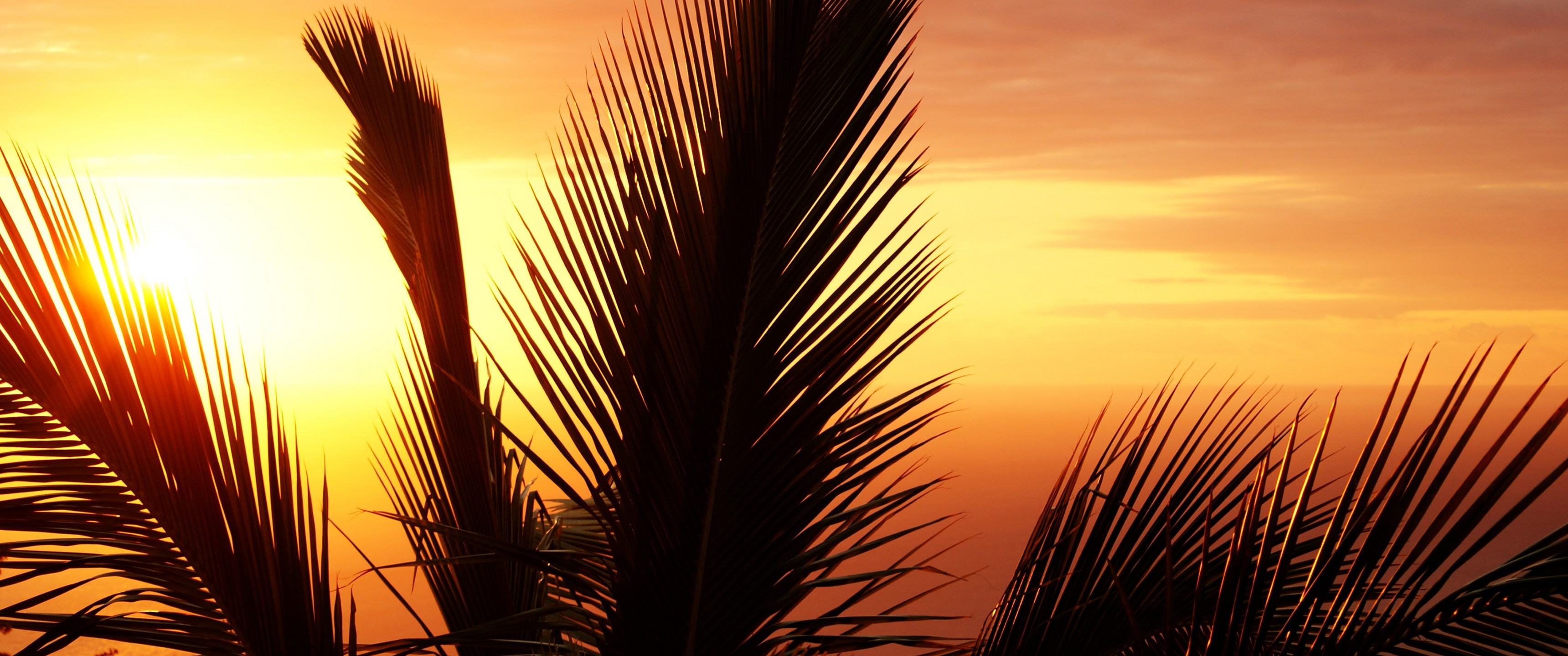 Beautiful Palms Leaves and Sunlight - 3440x1440 Ultra WQHD