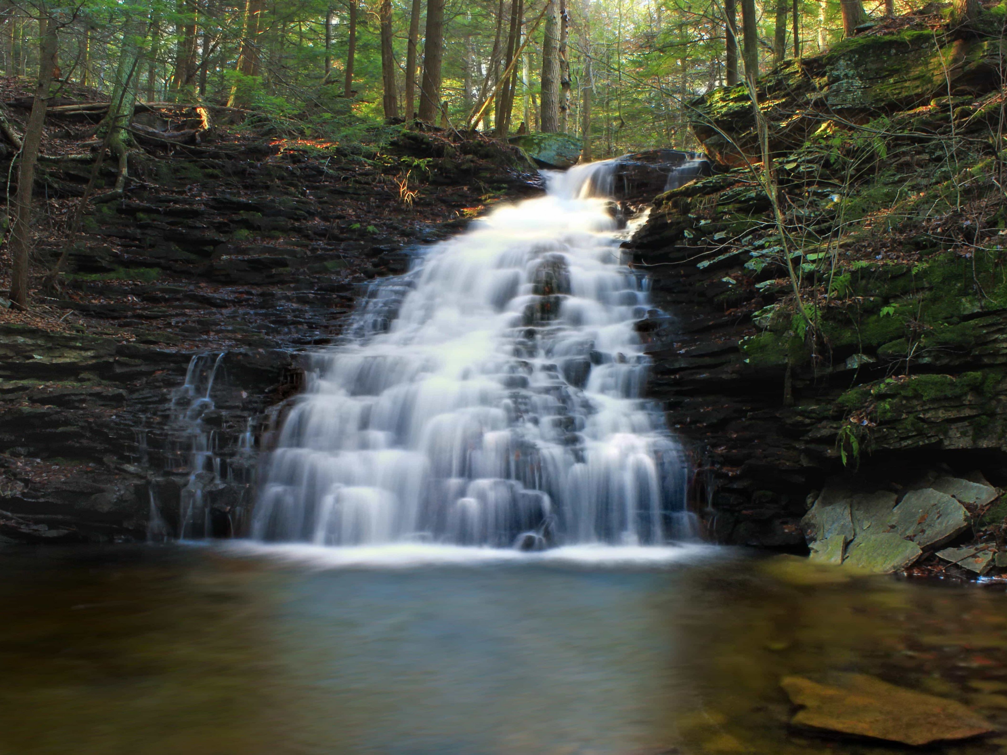 Beautiful pure waterfall and river in green forest - 3200x2400