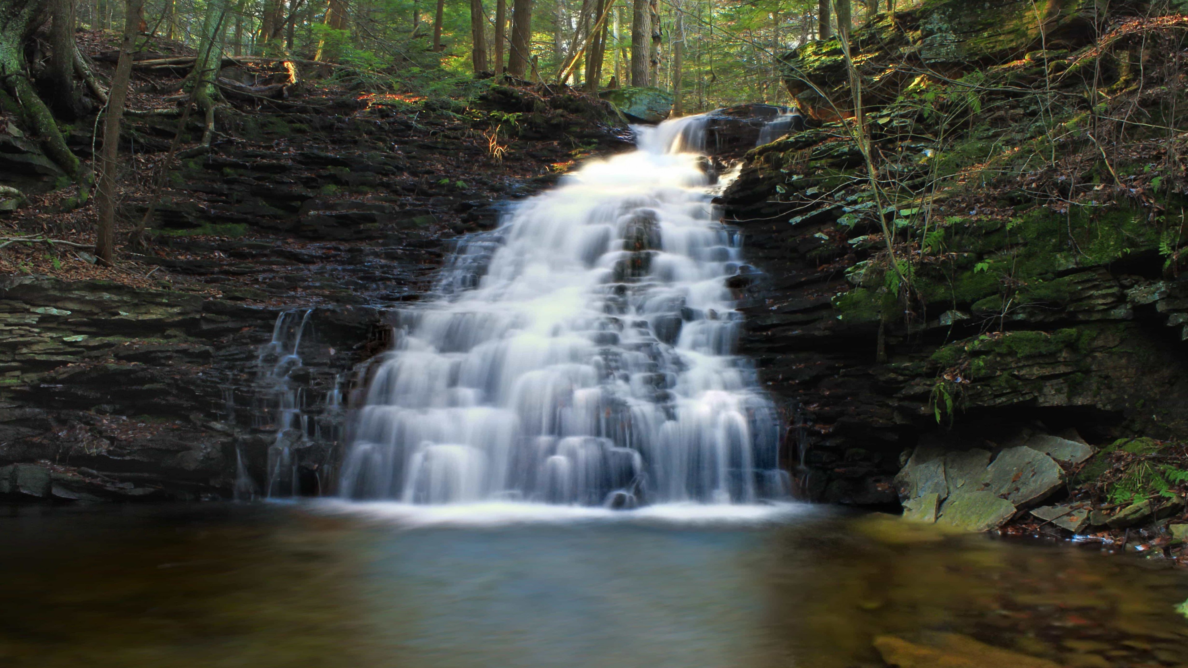 Beautiful pure waterfall and river in green forest - 3840x2160 4K UHD (UltraHD)