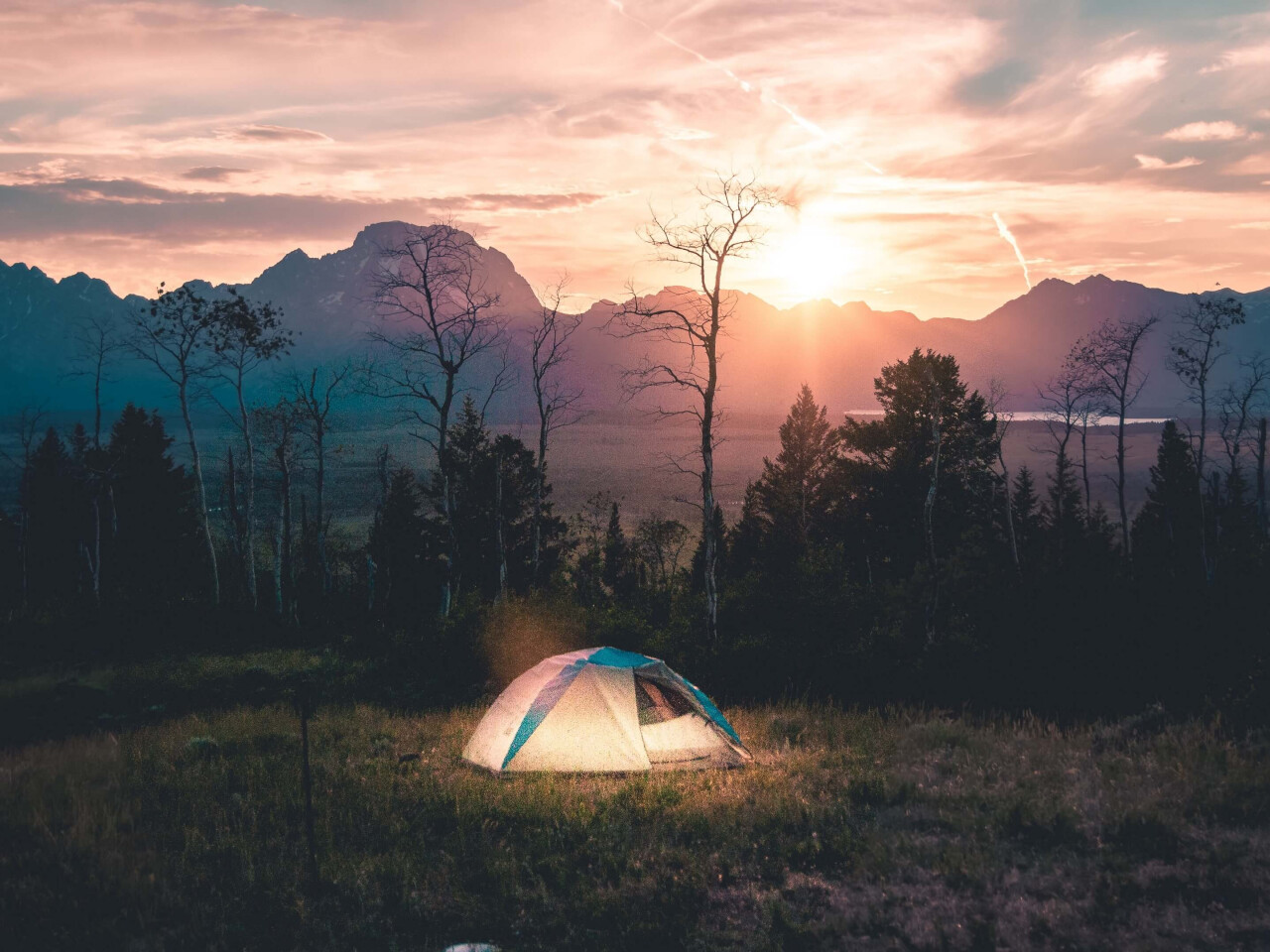 Beautiful purple dawn in mountain valley - 1280x960