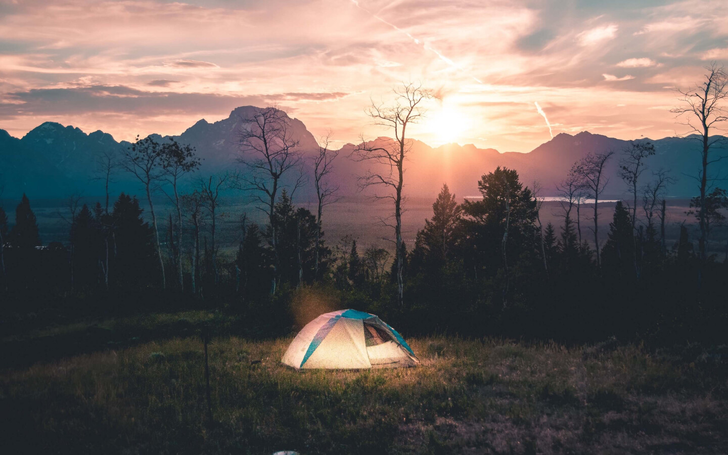 Beautiful purple dawn in mountain valley - 1440x900