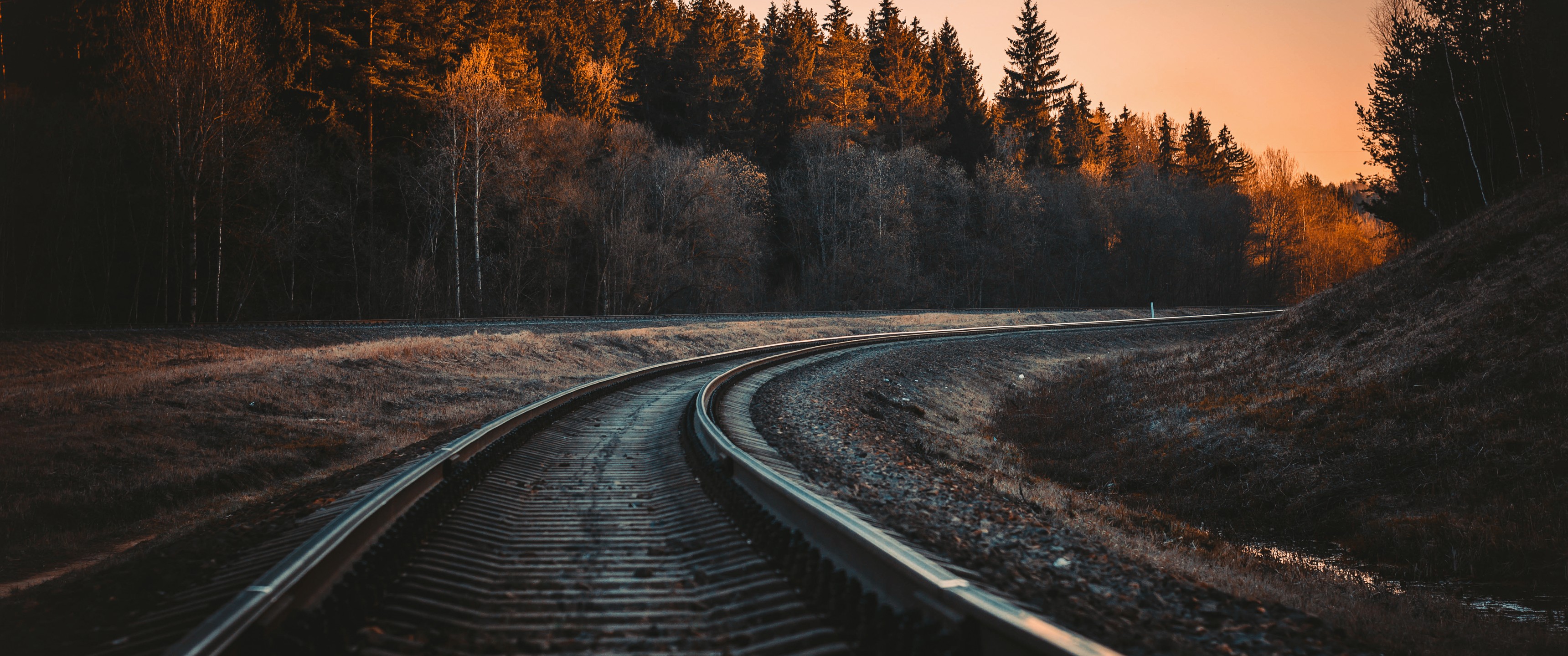 Beautiful Railroad in Spruce Forest and Sunset - 3440x1440 Ultra WQHD