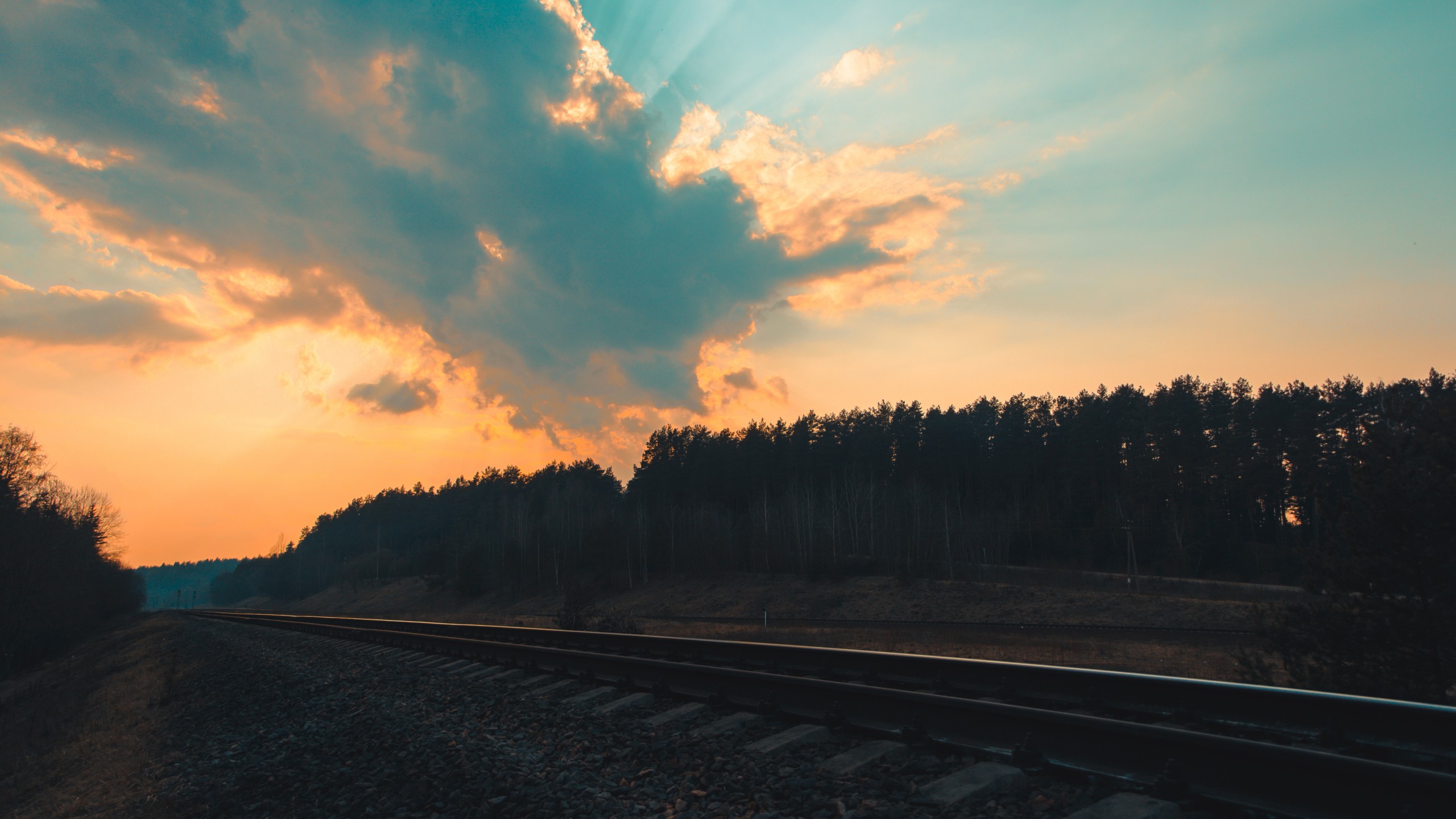 Beautiful Railroad Old Forest and Sunset - 2560x1440