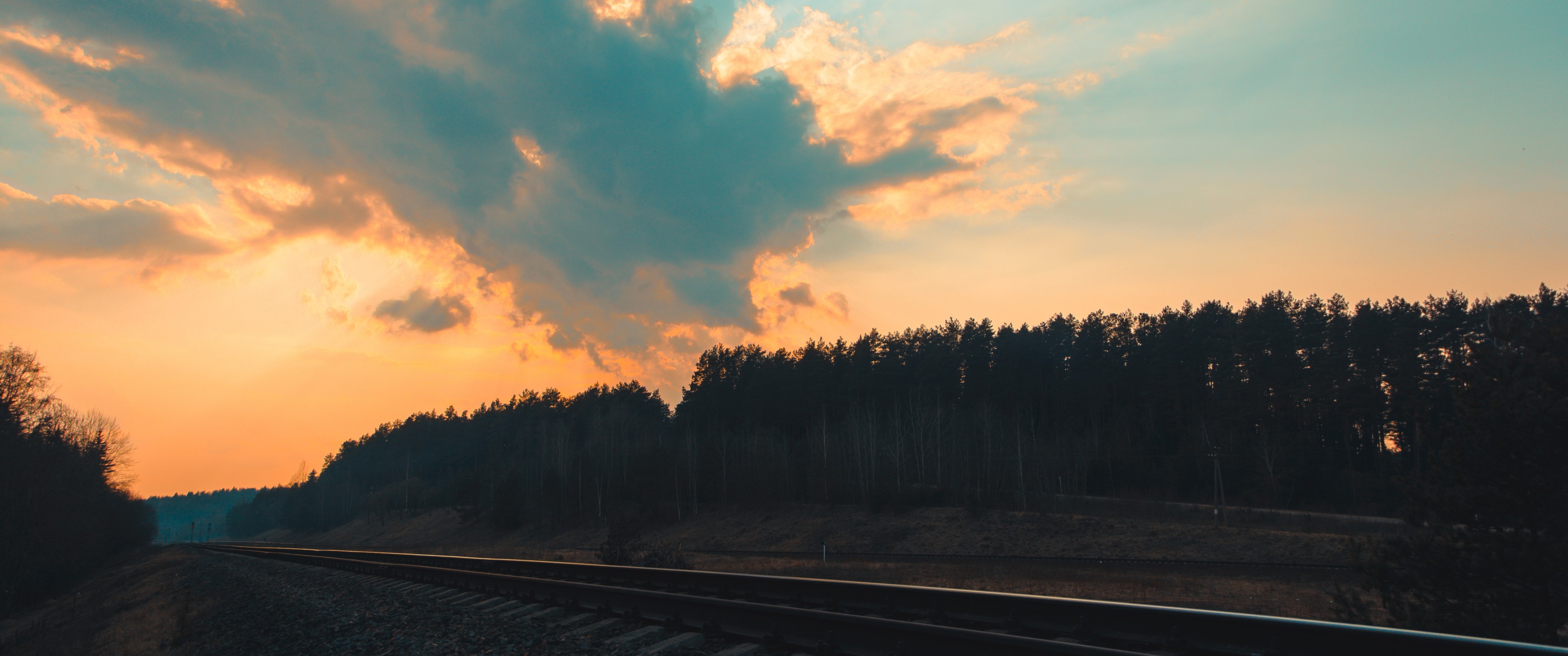Beautiful Railroad Old Forest and Sunset - 3440x1440 Ultra WQHD
