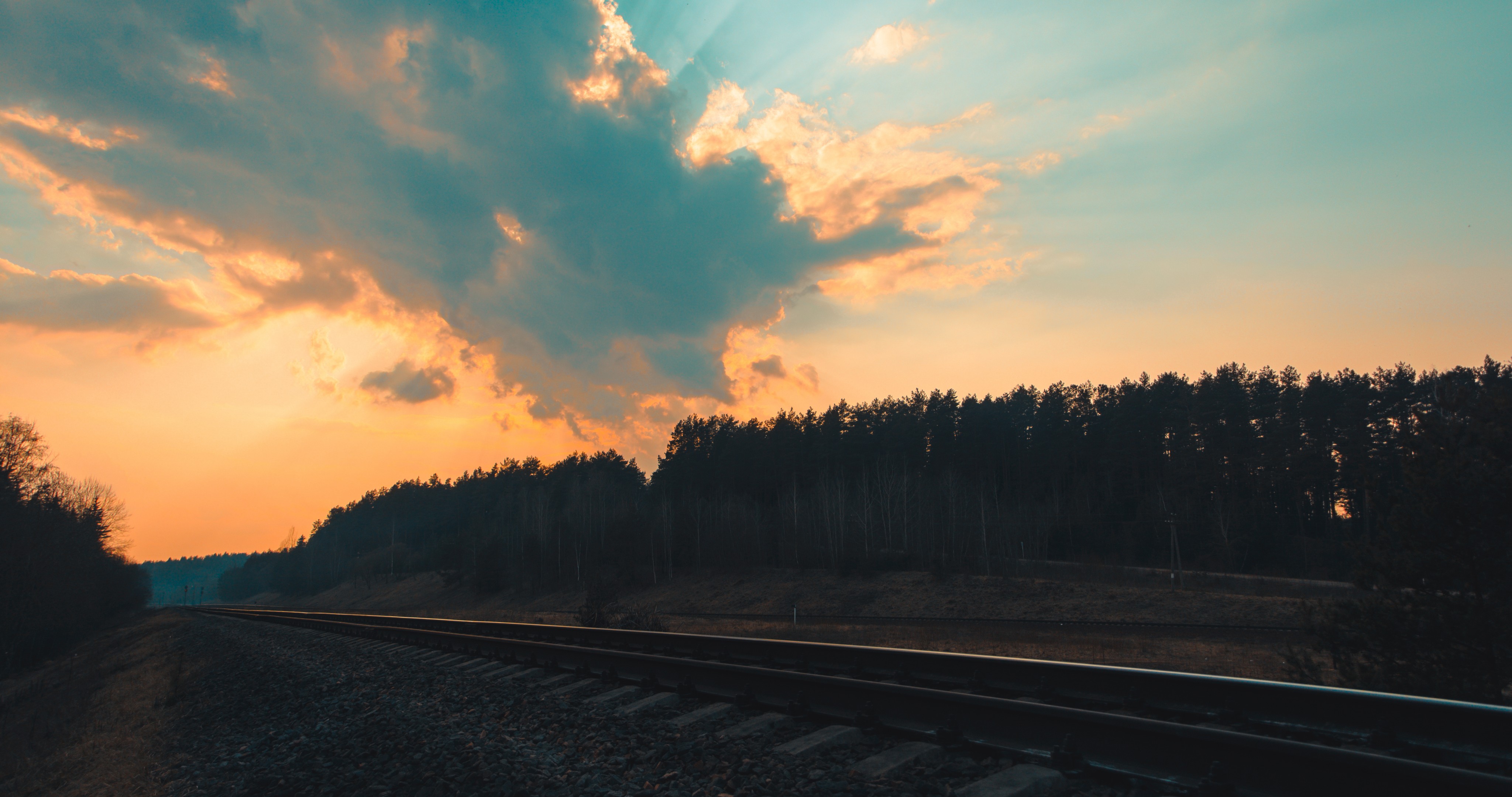 Beautiful Railroad Old Forest and Sunset - 4096x2160 4K
