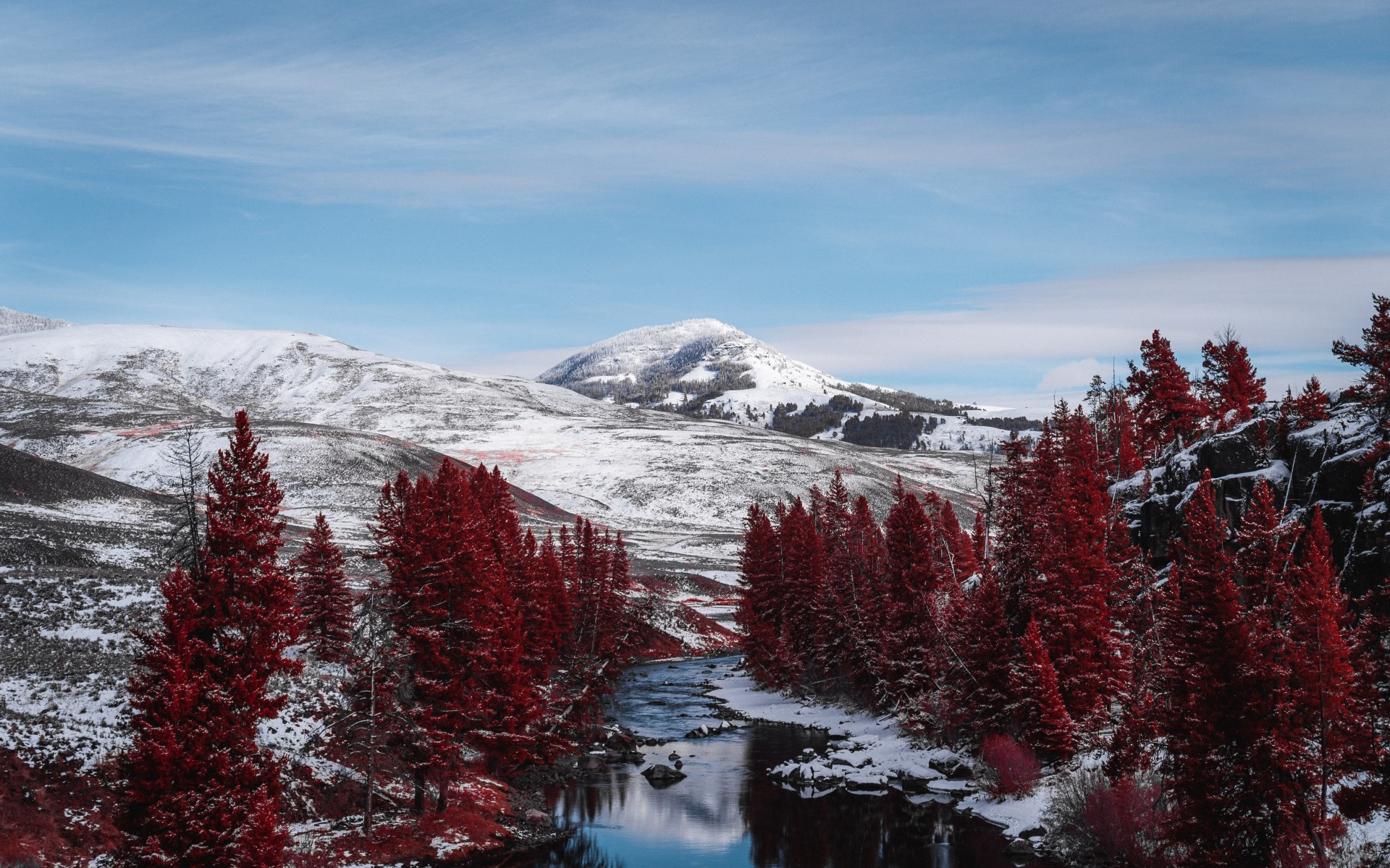 Beautiful Red Fir Forest and Mountains - 1920x1200