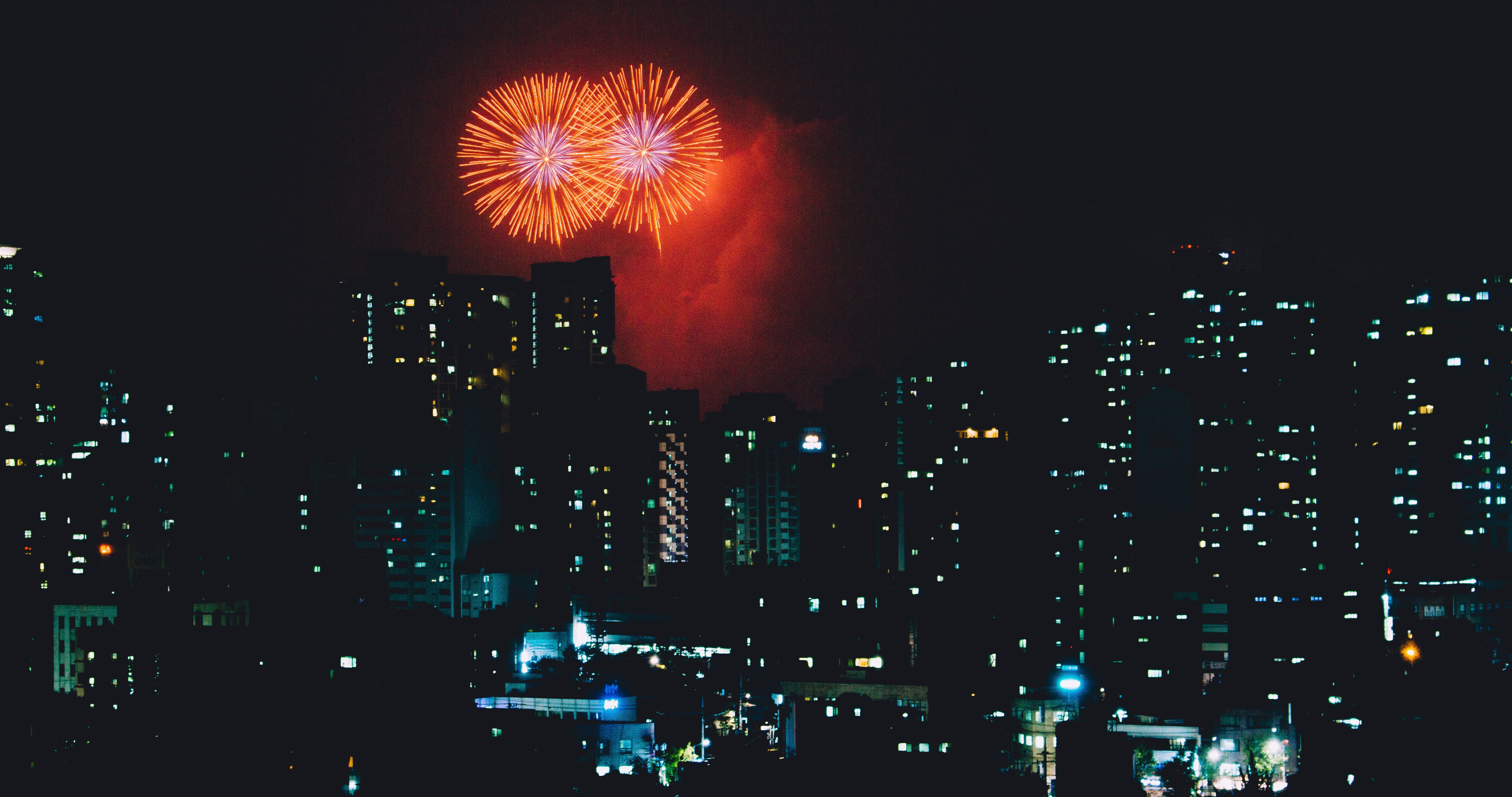 Beautiful Red Fireworks in Big City - 4096x2160 4K