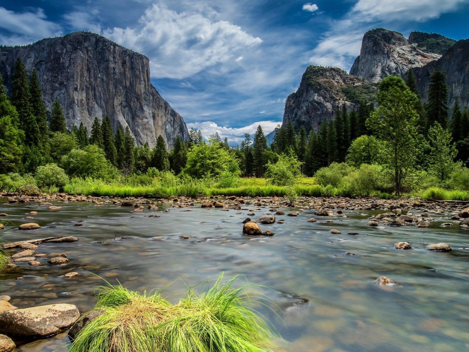 Beautiful River in Mountains Valley and Trees - 1600x1200