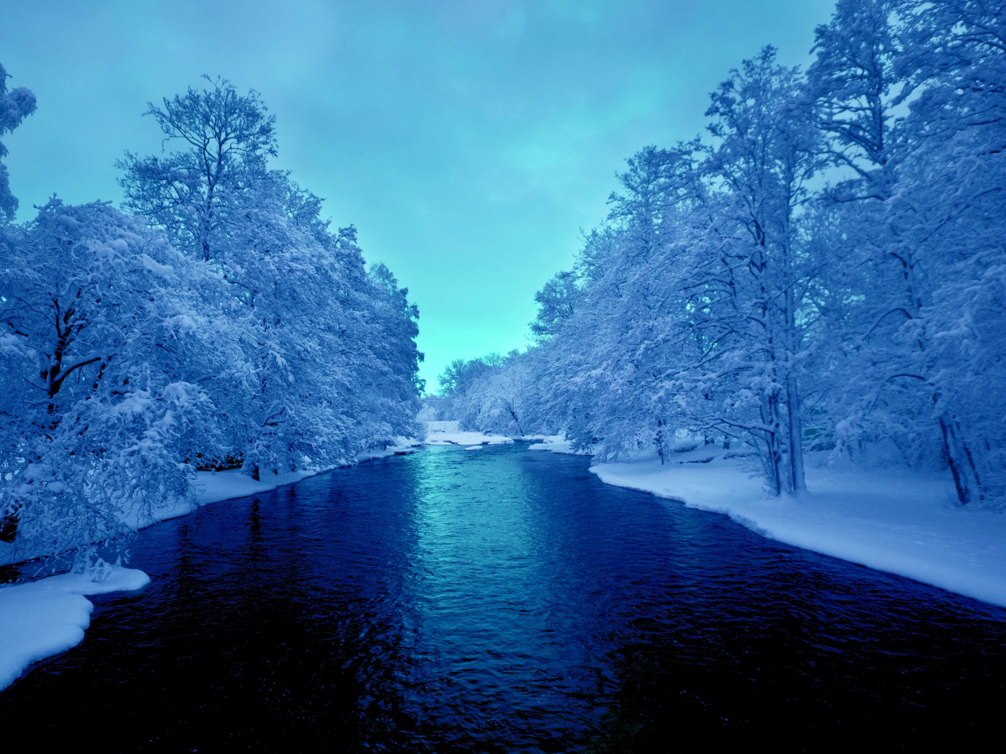 Beautiful River in Winter Forest and Sunset - 3200x2400