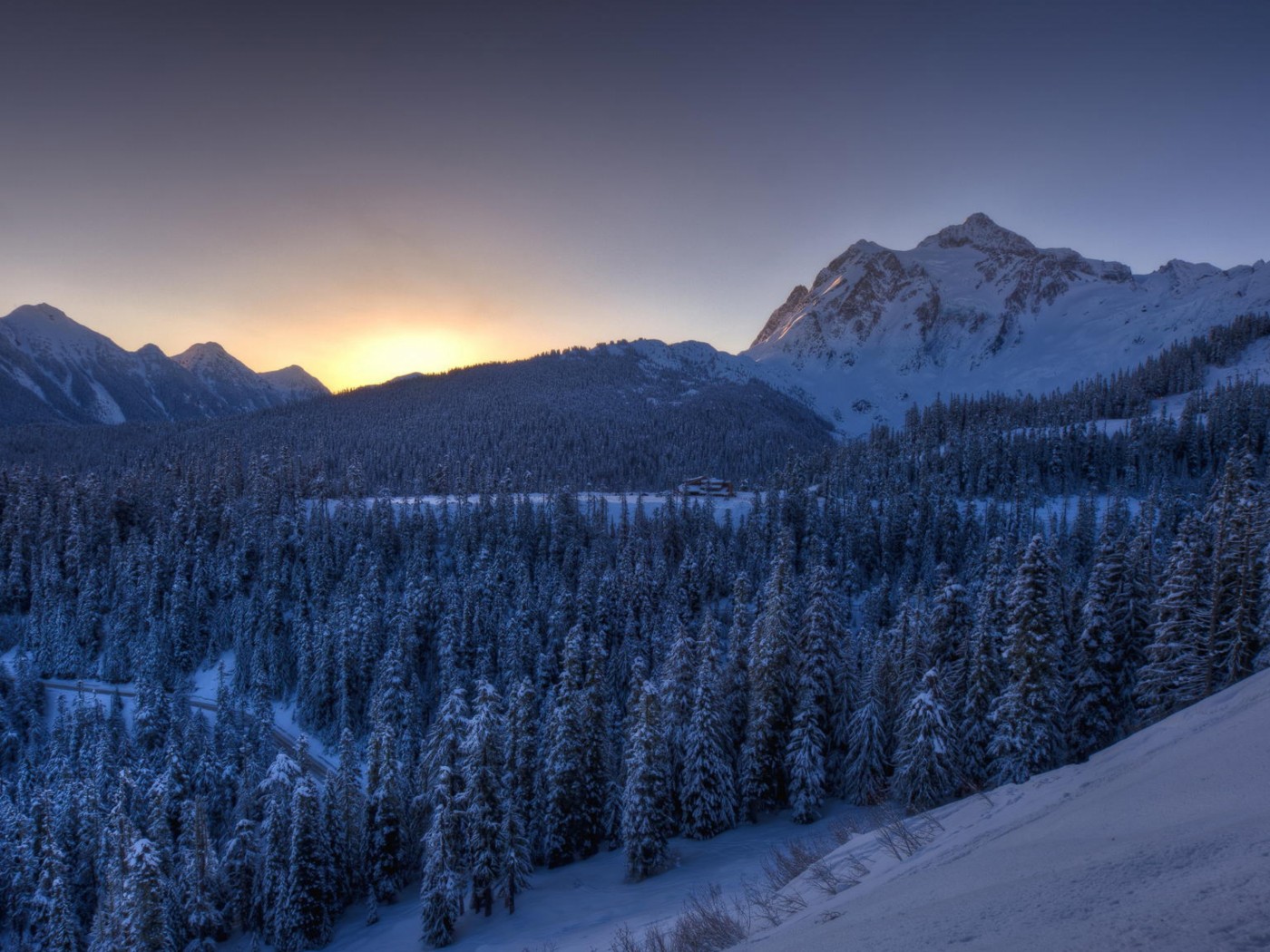 Beautiful Snow Covered Forest in Mountain Valley - 1400x1050