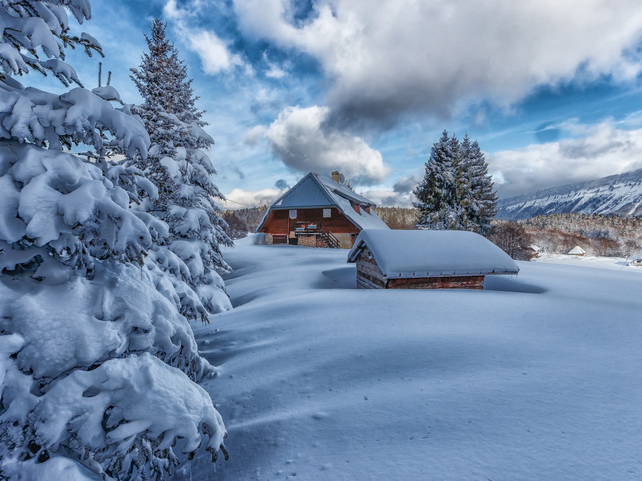 Beautiful Snow Covered Valley and Houses - 1280x960