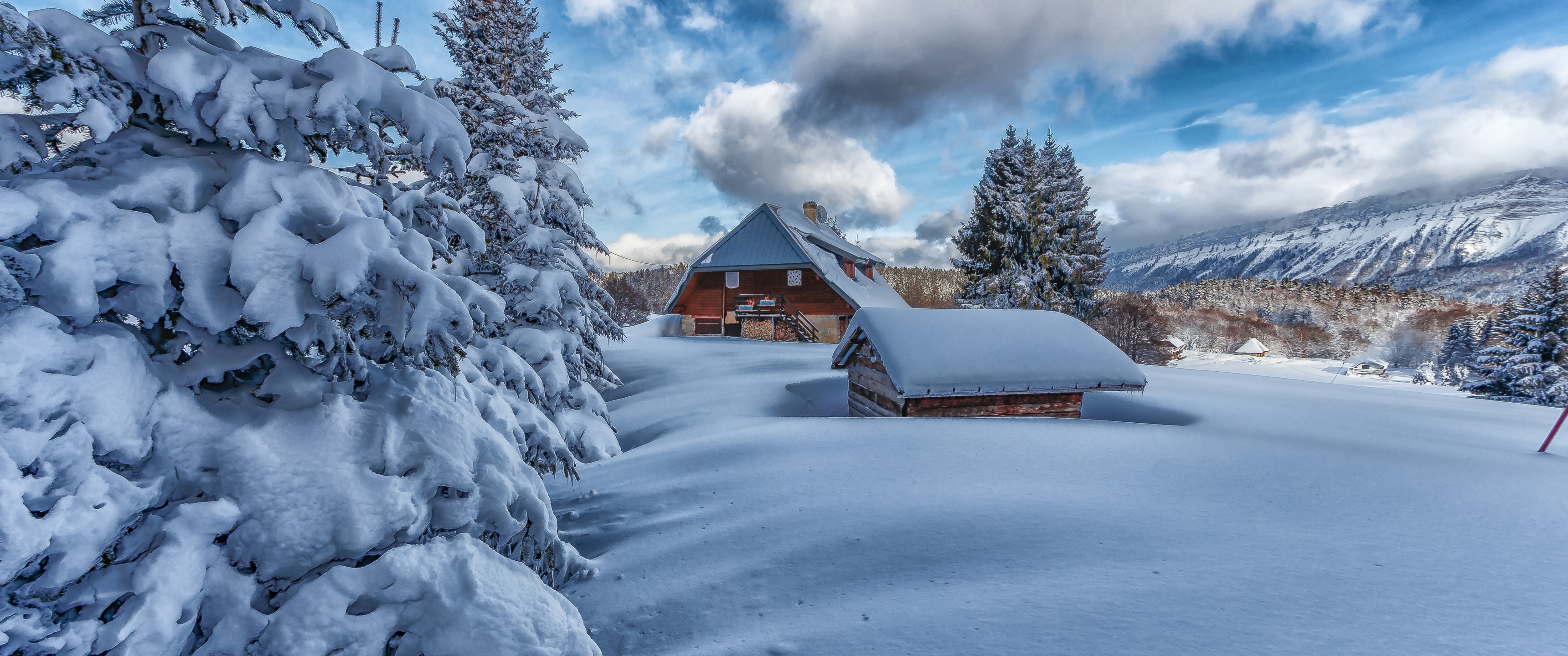 Beautiful Snow Covered Valley and Houses - 3440x1440 Ultra WQHD