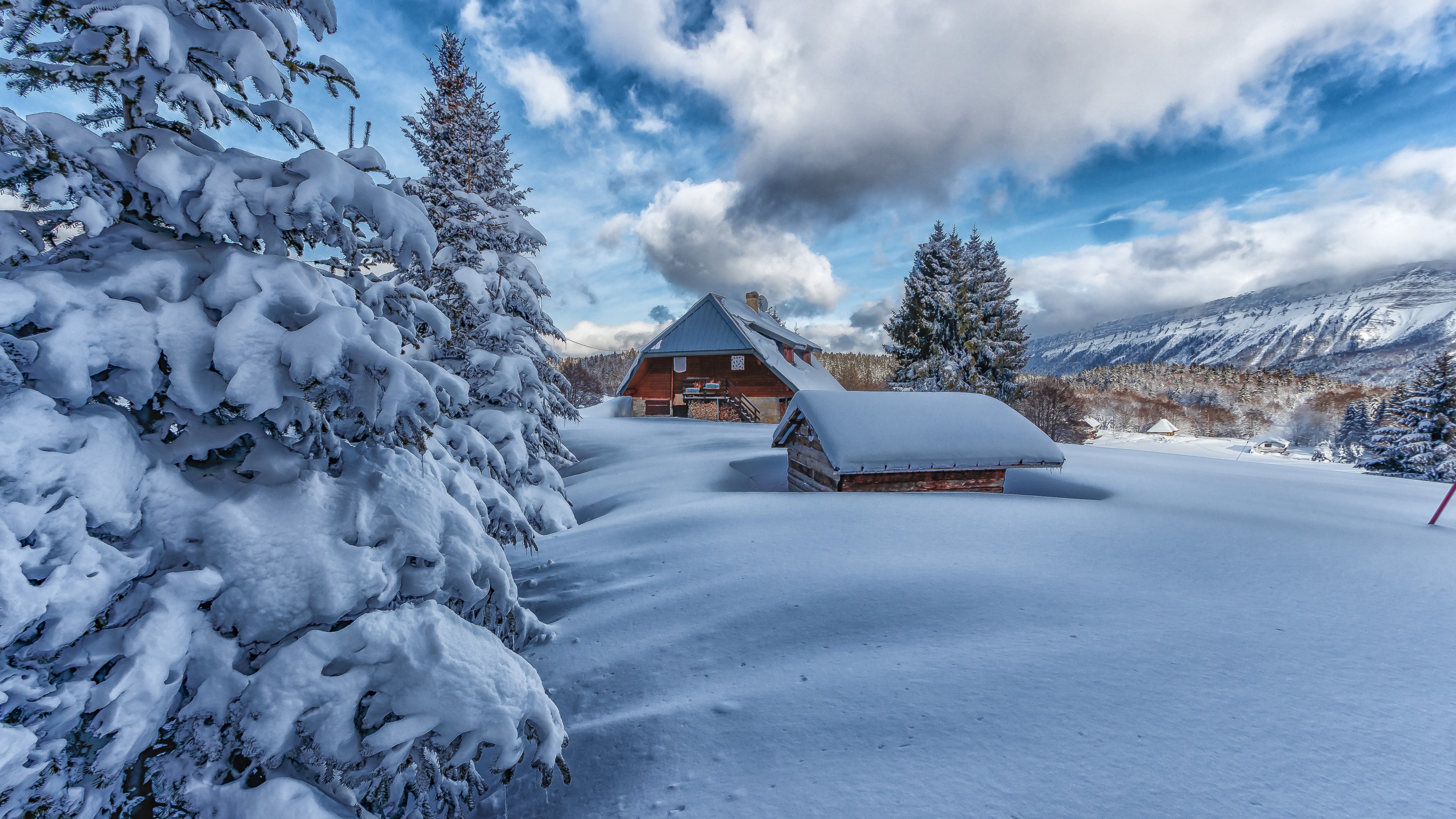 Beautiful Snow Covered Valley and Houses - 3840x2160 4K UHD (UltraHD)