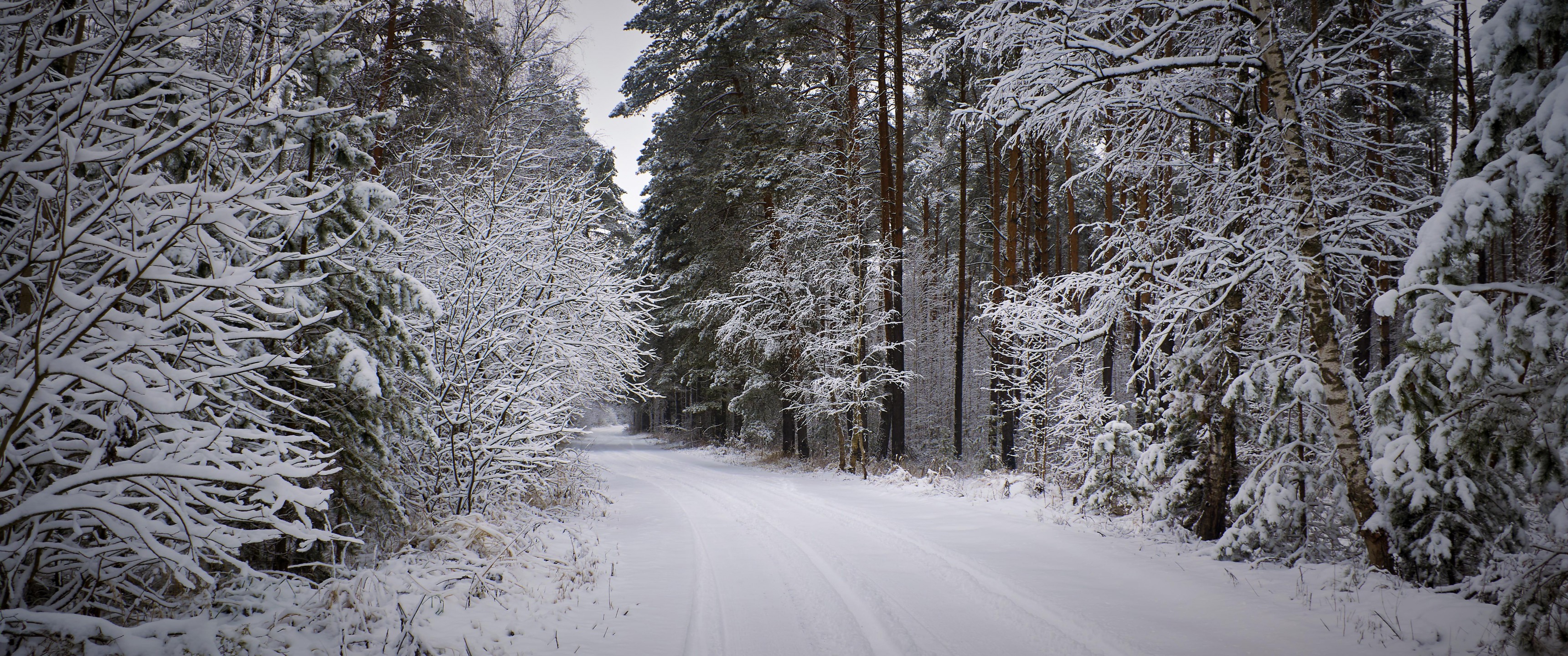 Beautiful Snowy Forest and Road - 3440x1440 Ultra WQHD