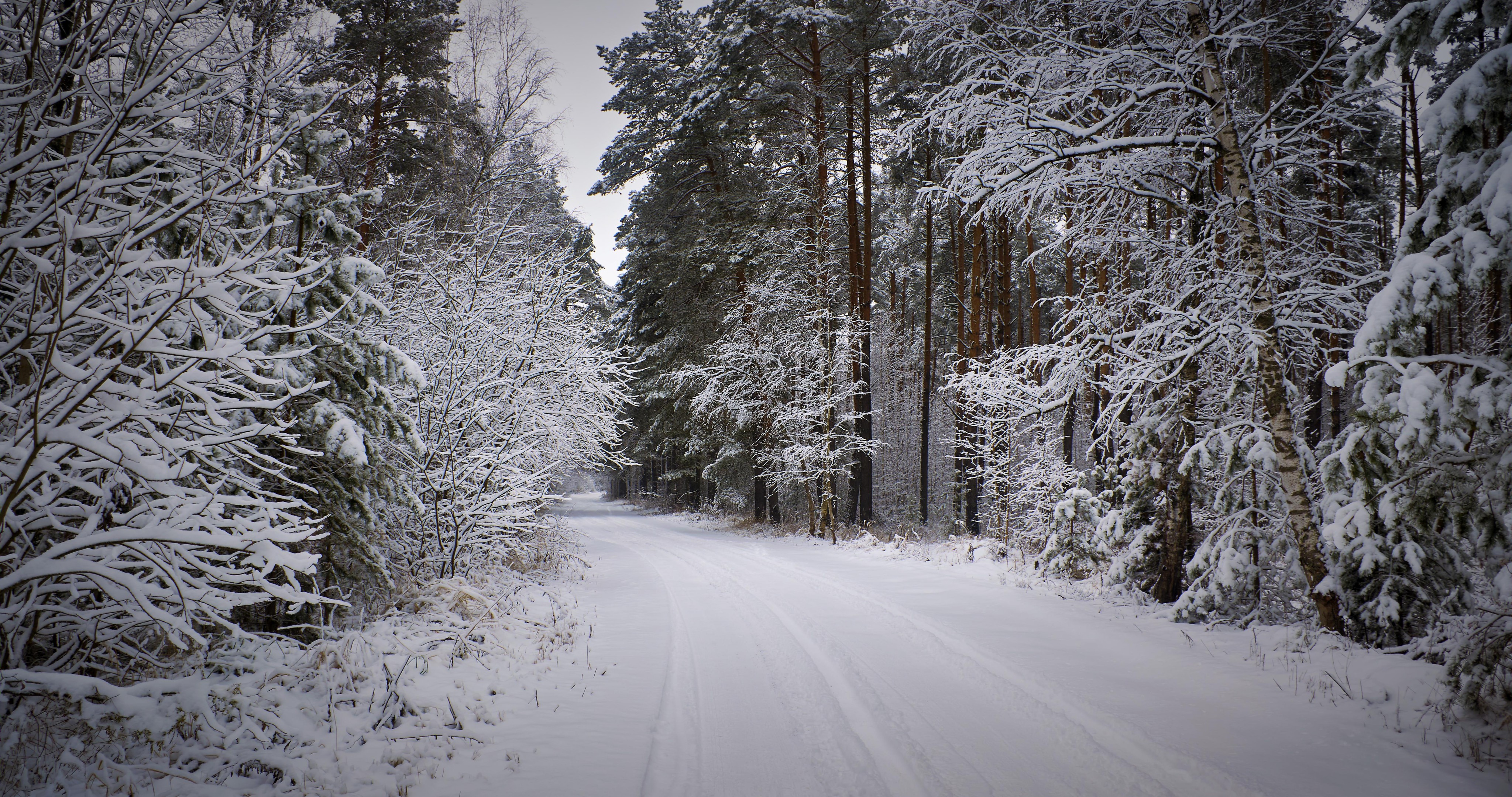 Beautiful Snowy Forest and Road - 4096x2160 4K