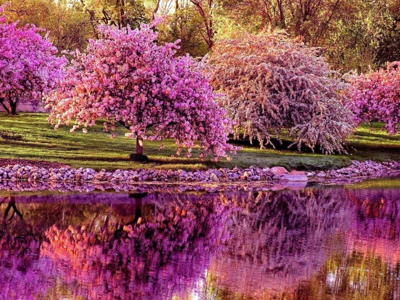 Beautiful Spring Garden and Purple Trees - 1400x1050