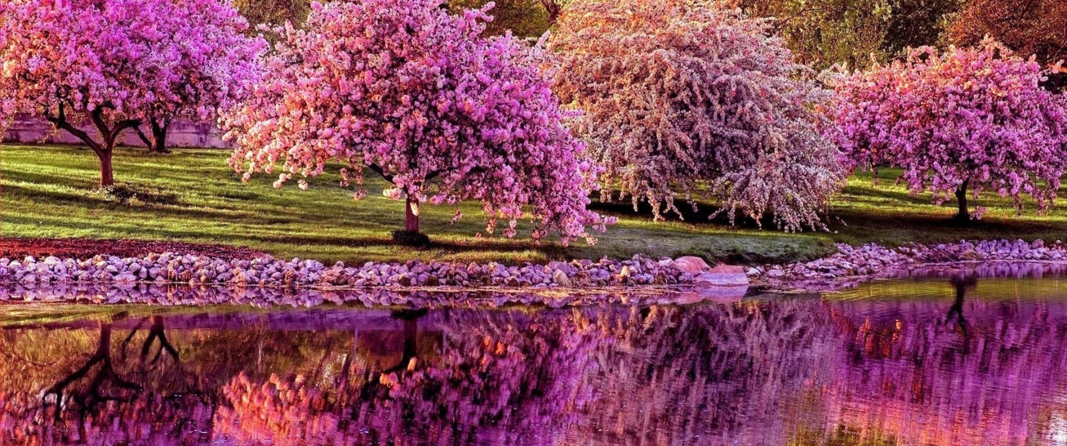 Beautiful Spring Garden and Purple Trees - 3440x1440 Ultra WQHD
