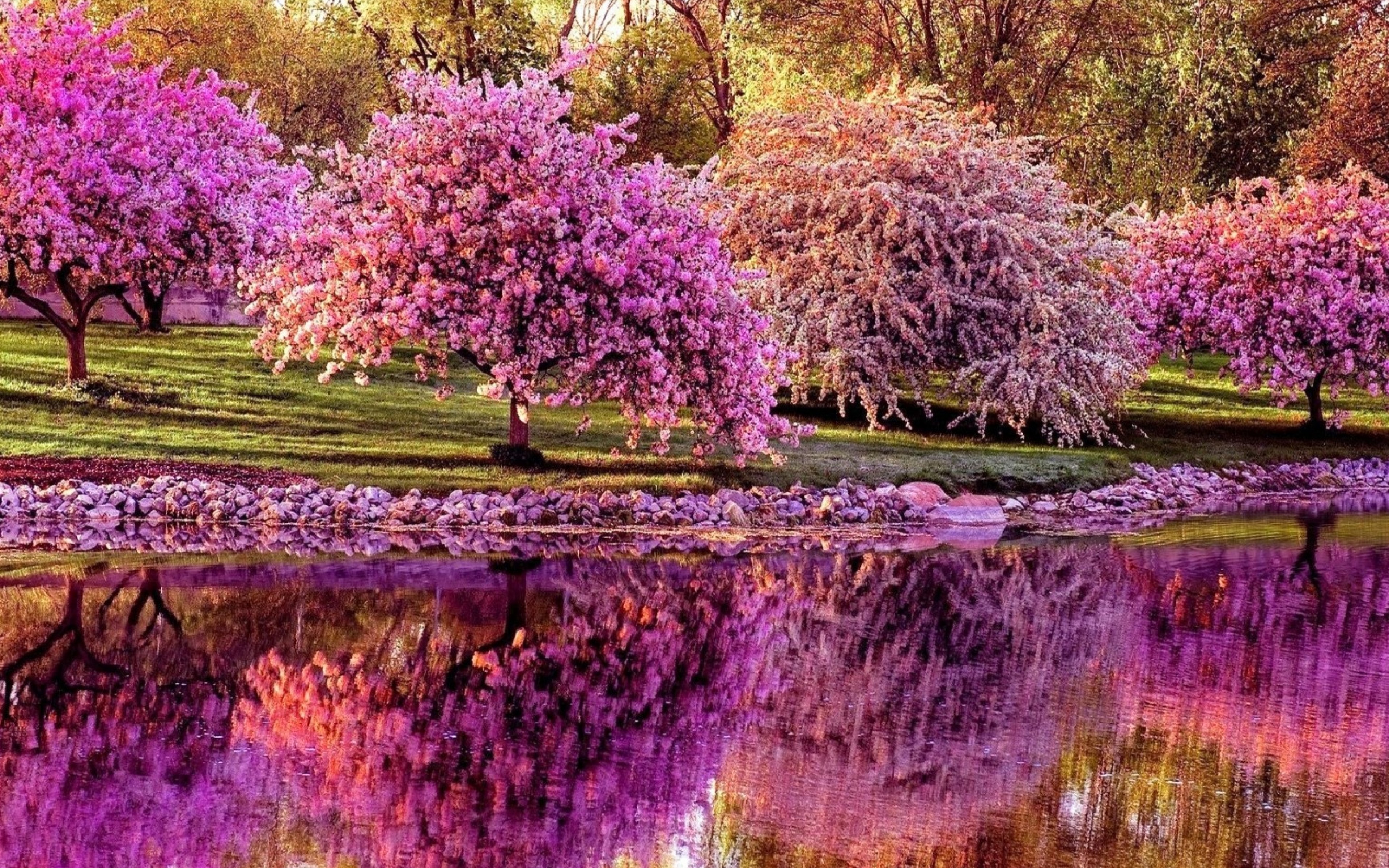 Beautiful Spring Garden and Purple Trees - 3840x2400