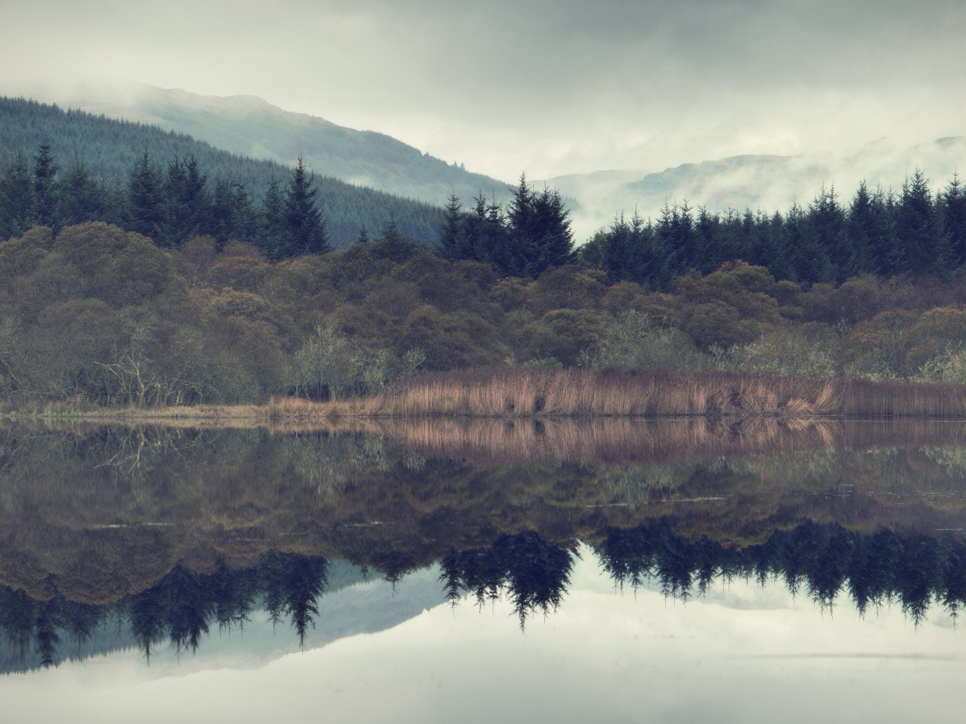 Beautiful Spruce Forest and Clouds - 1400x1050