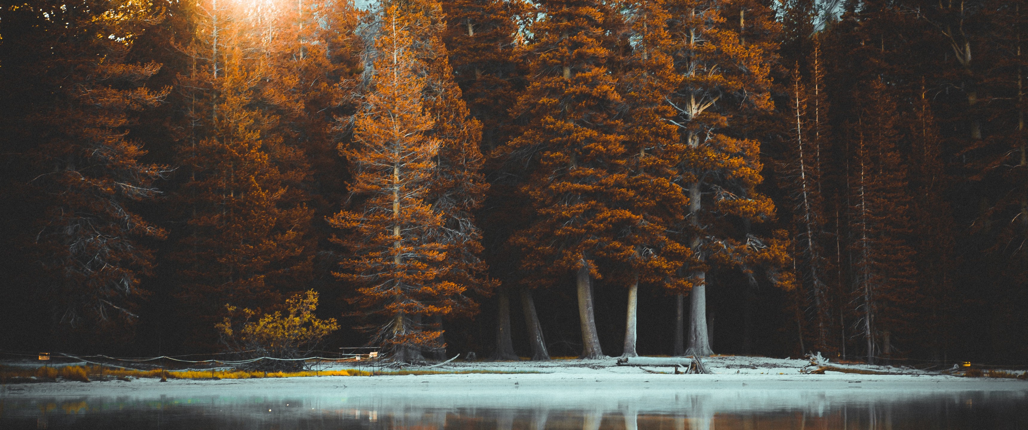 Beautiful Sunbeam and Fir Trees on Shore - 3440x1440 Ultra WQHD