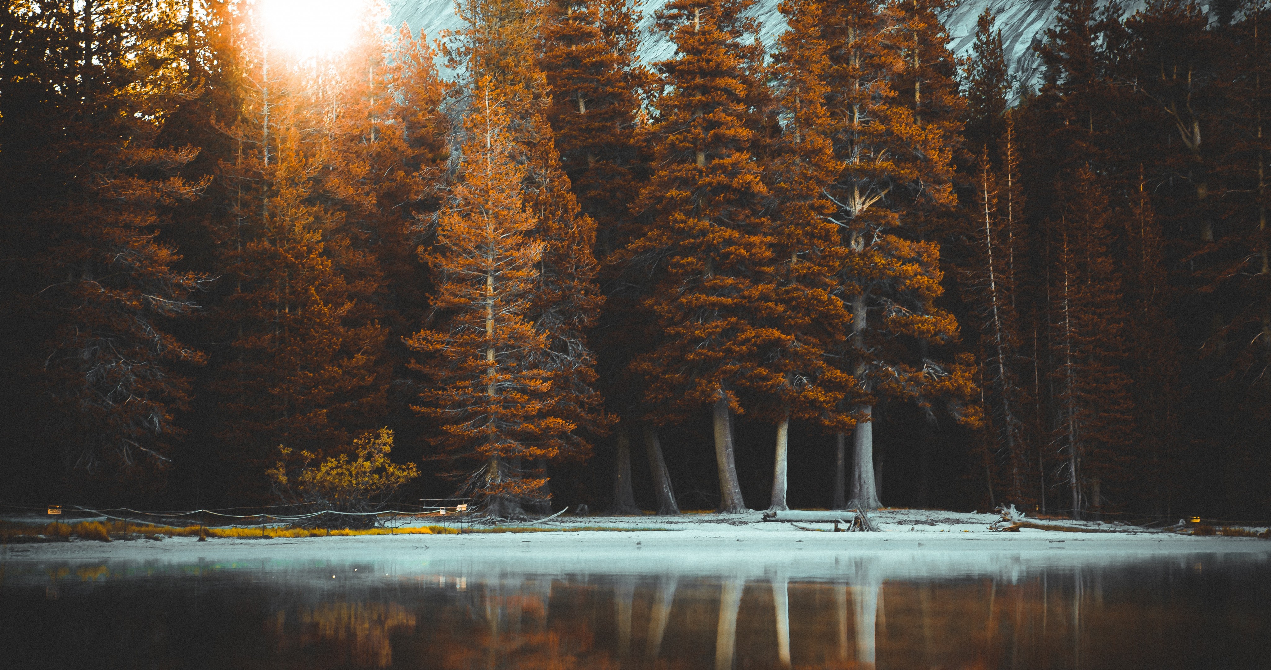 Beautiful Sunbeam and Fir Trees on Shore - 4096x2160 4K
