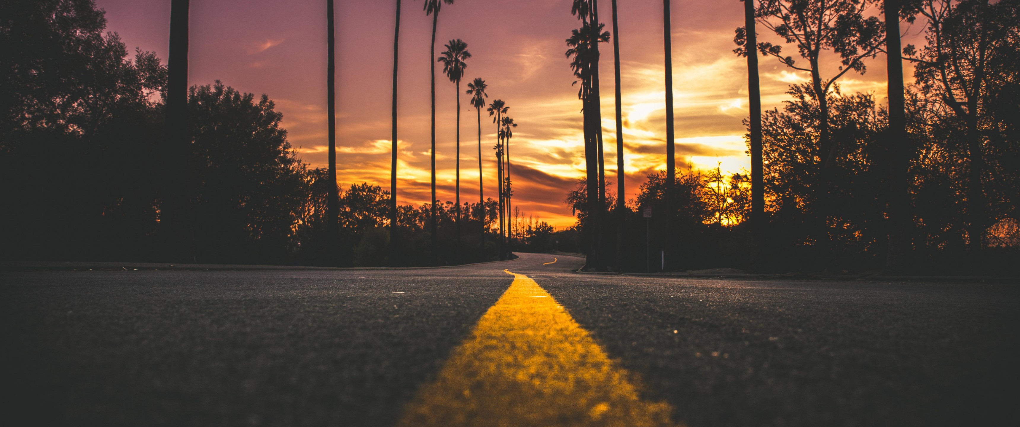 Beautiful sunset road and palm trees - 3440x1440 Ultra WQHD