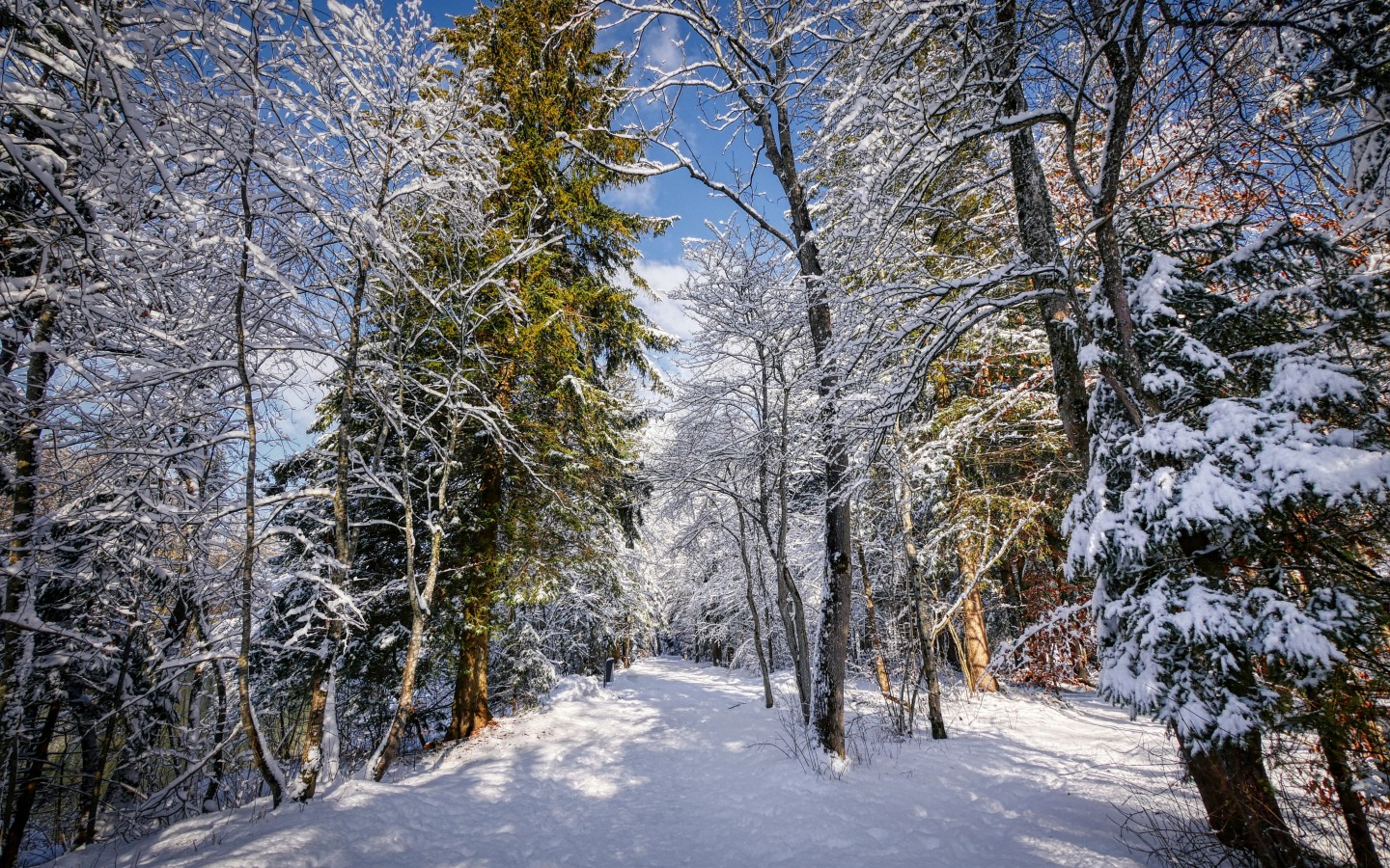 Beautiful Trees in Winter Forest - 1440x900