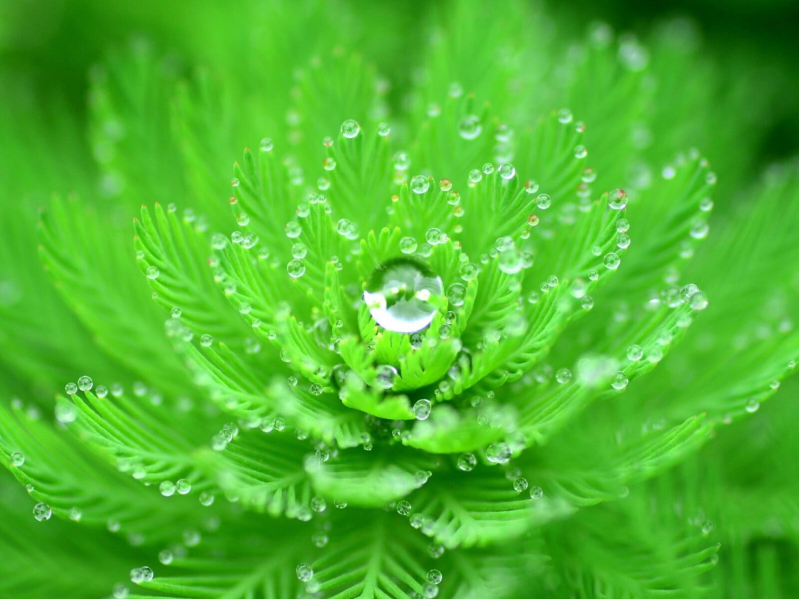 Beautiful Water Droplets on Green Leaves - 1600x1200