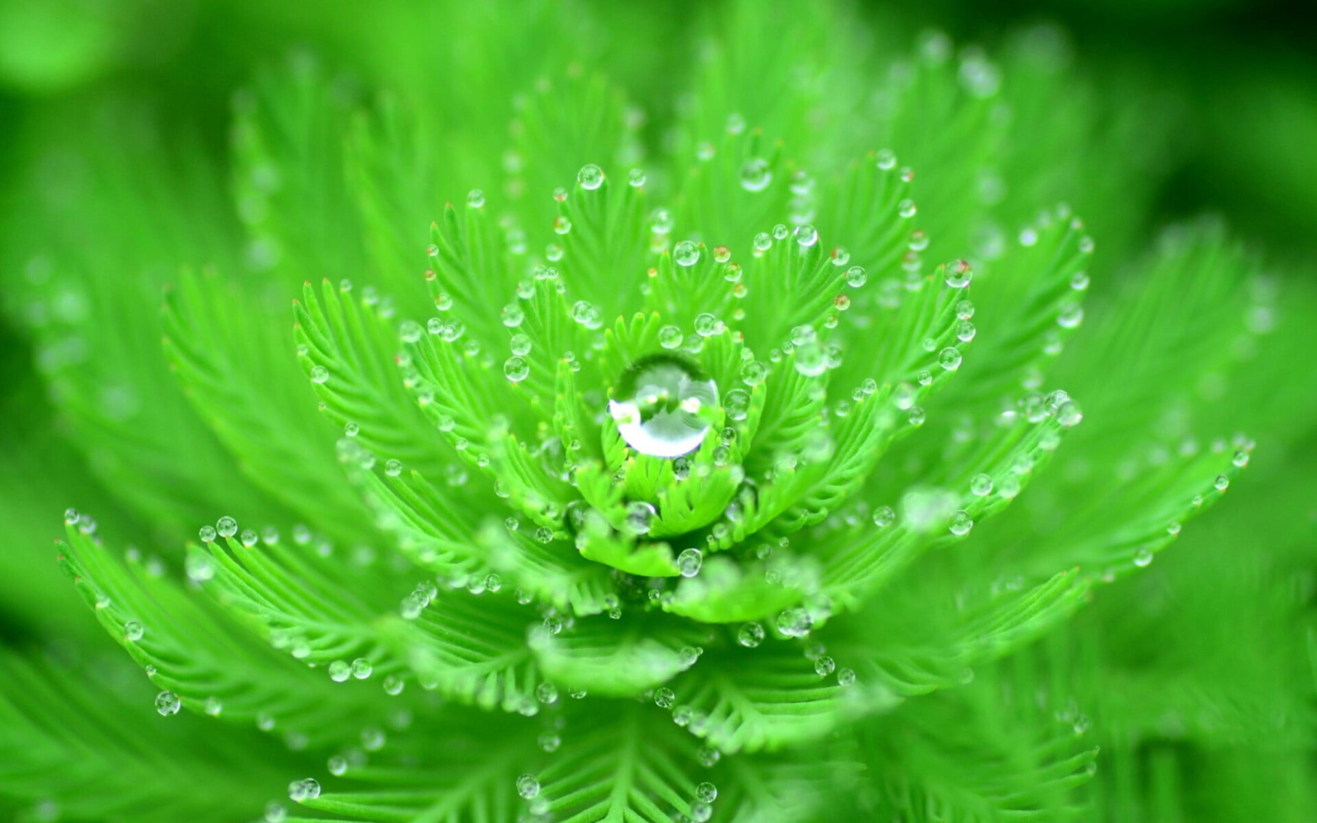 Beautiful Water Droplets on Green Leaves - 1920x1200