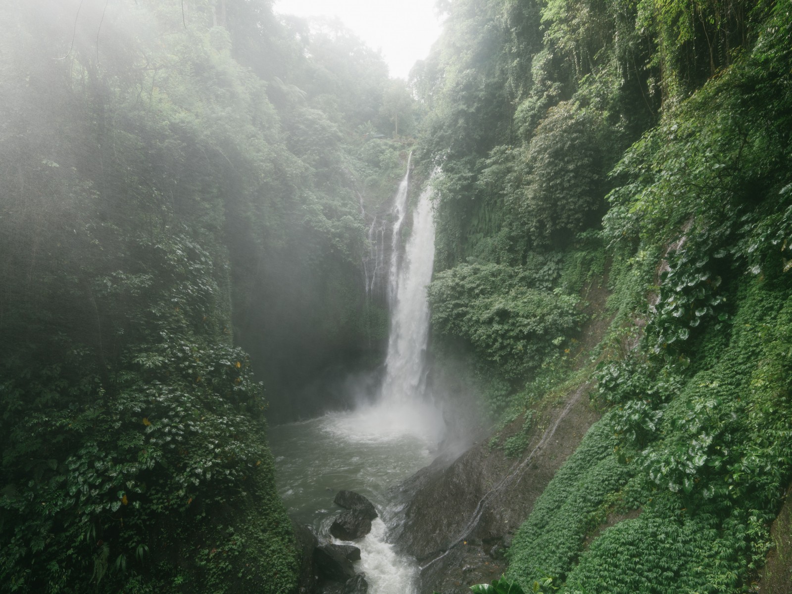 Beautiful Waterfall in Green Forest and Fog - 1600x1200