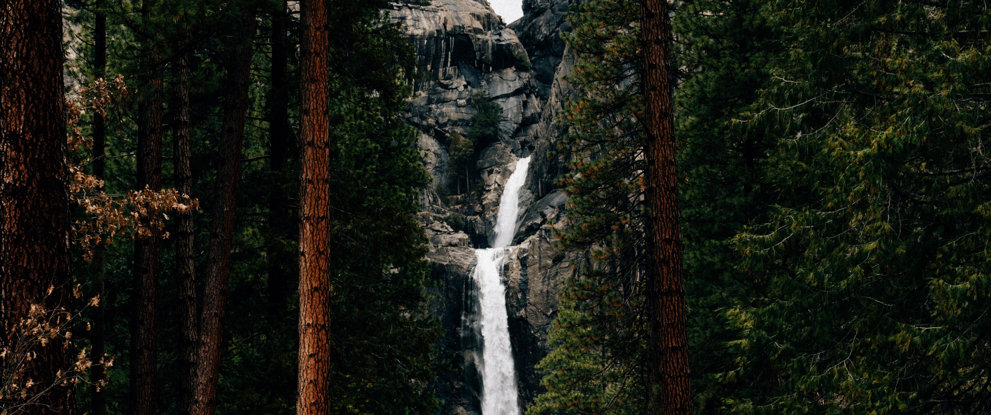 Beautiful Waterfall in Pine Forest - 3440x1440 Ultra WQHD