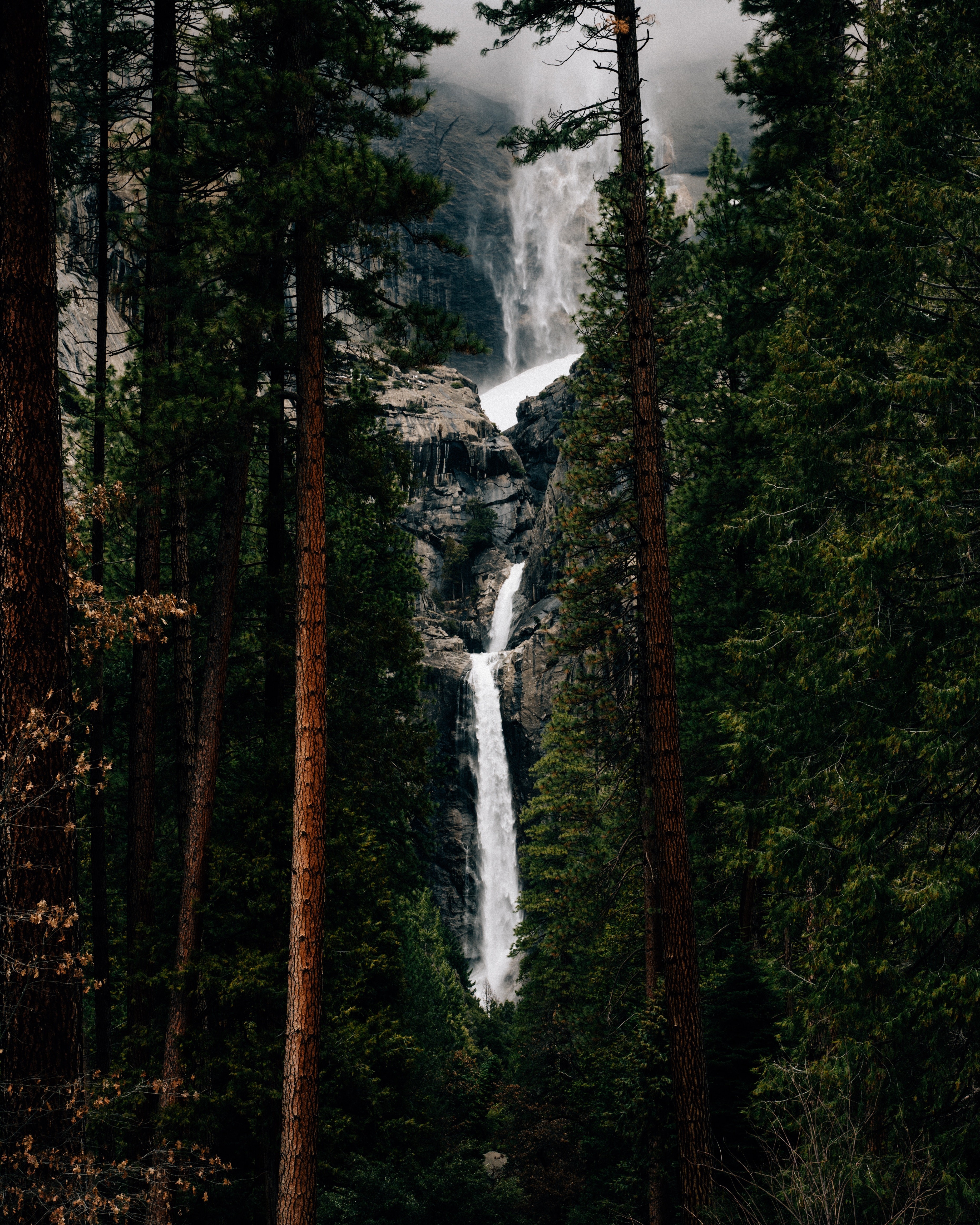 Beautiful Waterfall in Pine Forest - 3722x4653