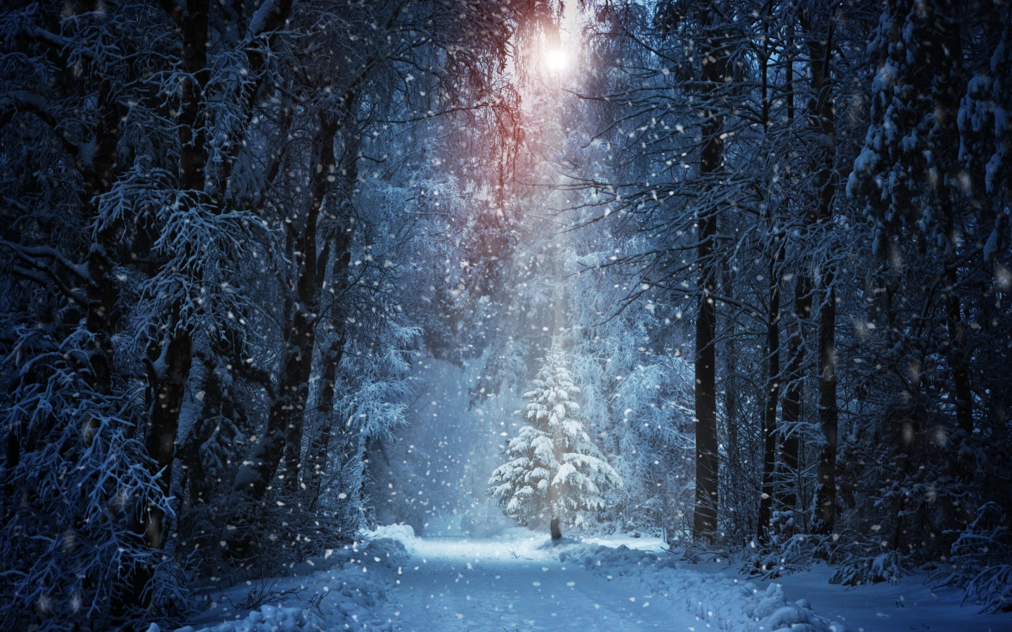 Beautiful Winter Forest and Single Spruce with Moonlight - 1440x900