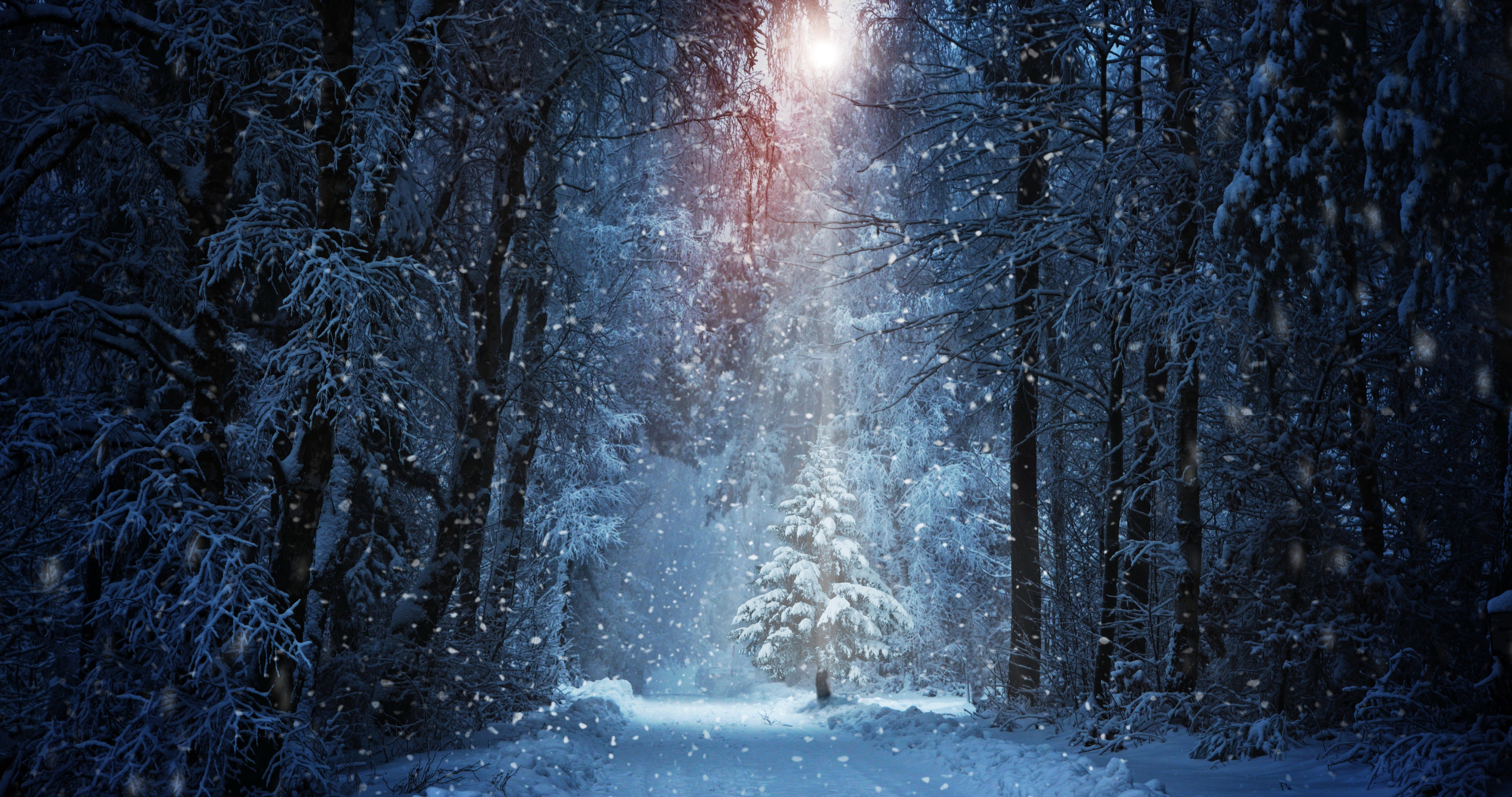 Beautiful Winter Forest and Single Spruce with Moonlight - 4096x2160 4K