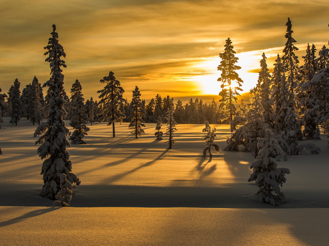 Beautiful Winter Forest and Sunset Sunlight - 1400x1050