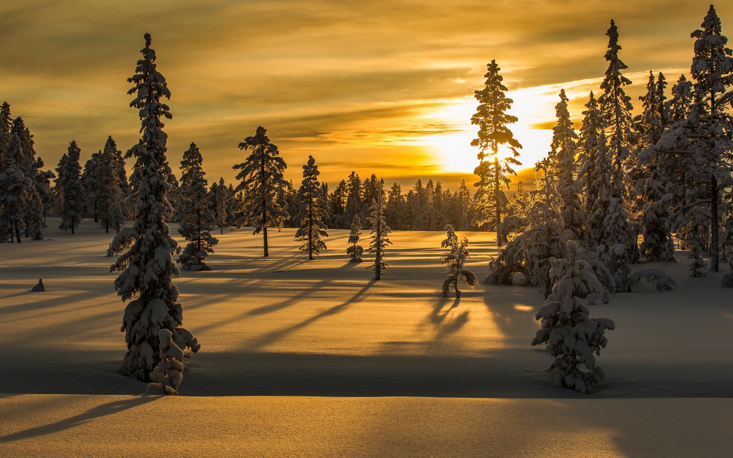 Beautiful Winter Forest and Sunset Sunlight - 1440x900