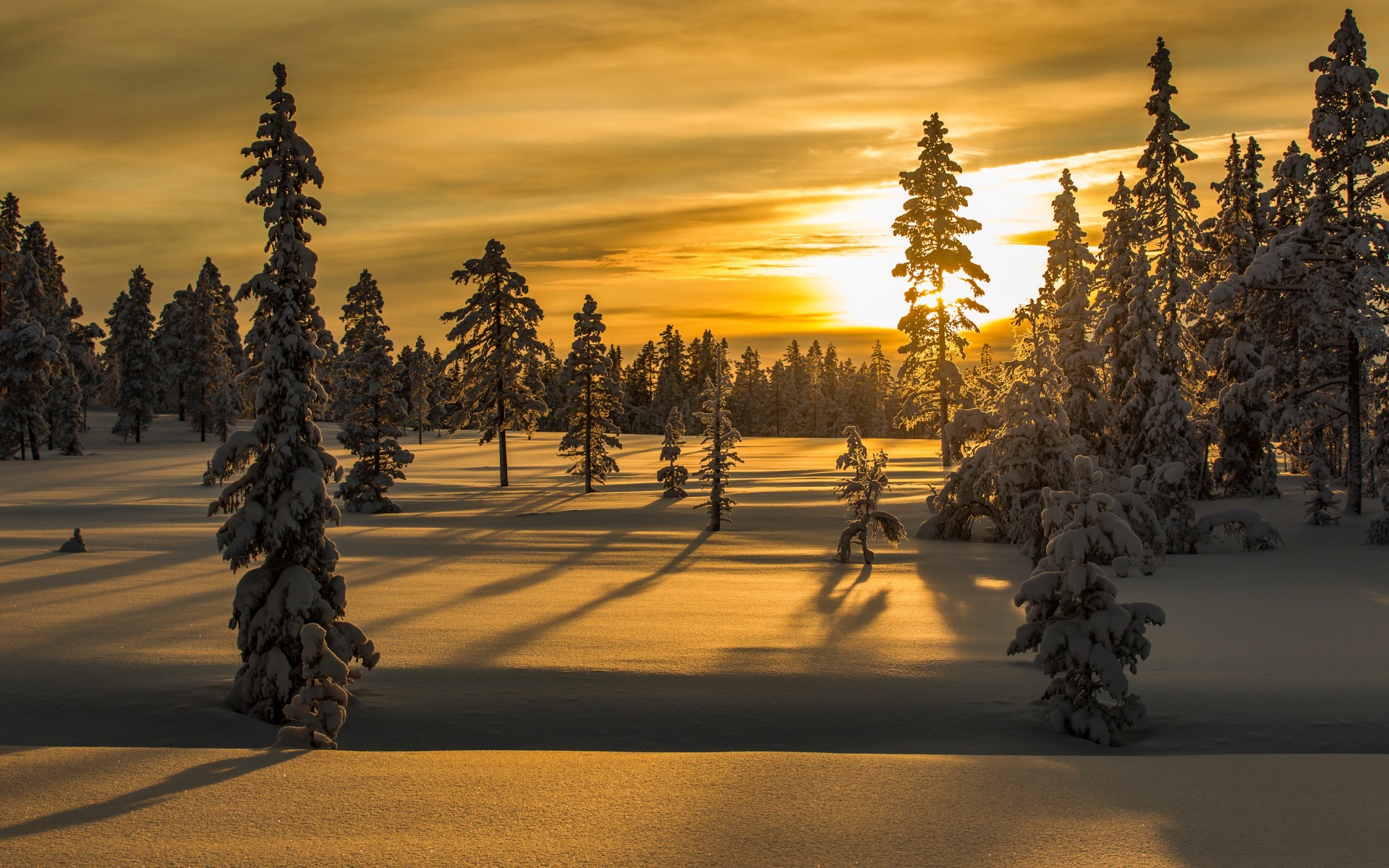 Beautiful Winter Forest and Sunset Sunlight - 1920x1200