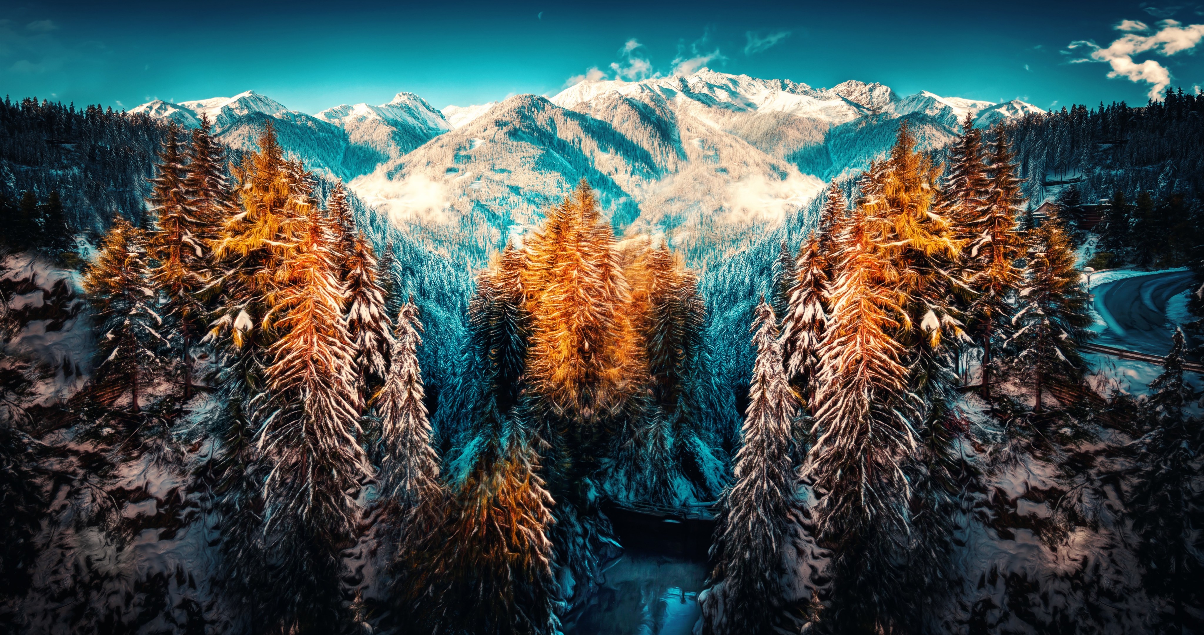 Beautiful Winter Forest in Mountain Valley and Sunlight - 4096x2160 4K